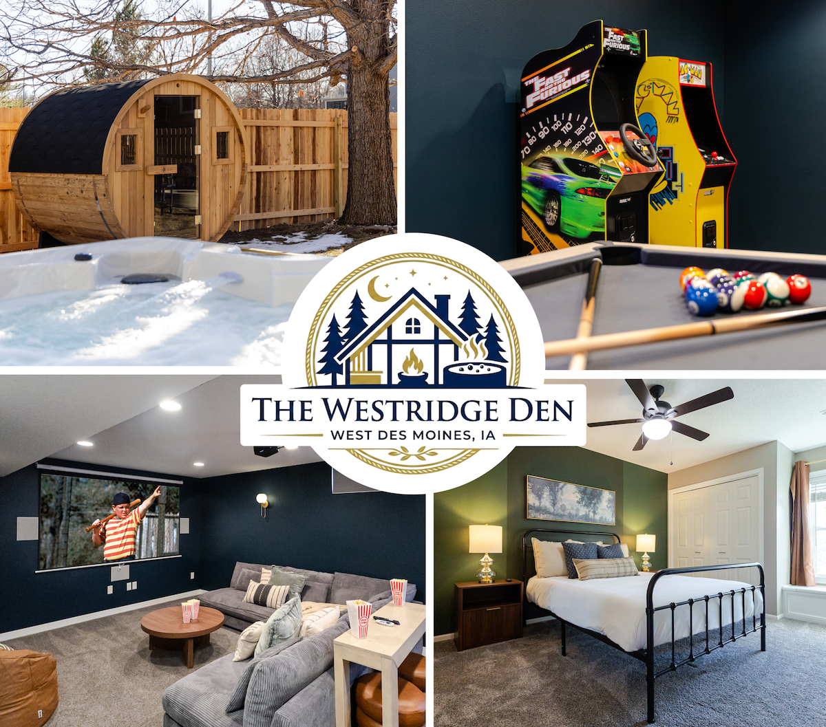 Velkommen til The Westridge Den – din ideelle base i West Des Moines. Tre minutter til Jordan Creek Town Center og 15 minutter til Des Moines sentrum. Dette ekspansive hjemmet med fem soverom og 3,5 bad er bygget for sammenkomster. Bade i boblebadet, slappe av i tønnebadstuen, nyte middag på terrassen, steke marshmallows og la barna leke i lekeområdet utendørs. Inkluderer kino og spillrom med biljardbord, air hockey, arkadespill, bar, bålplass, hagespill og TV-er i alle rom. Her skaper du minner!
