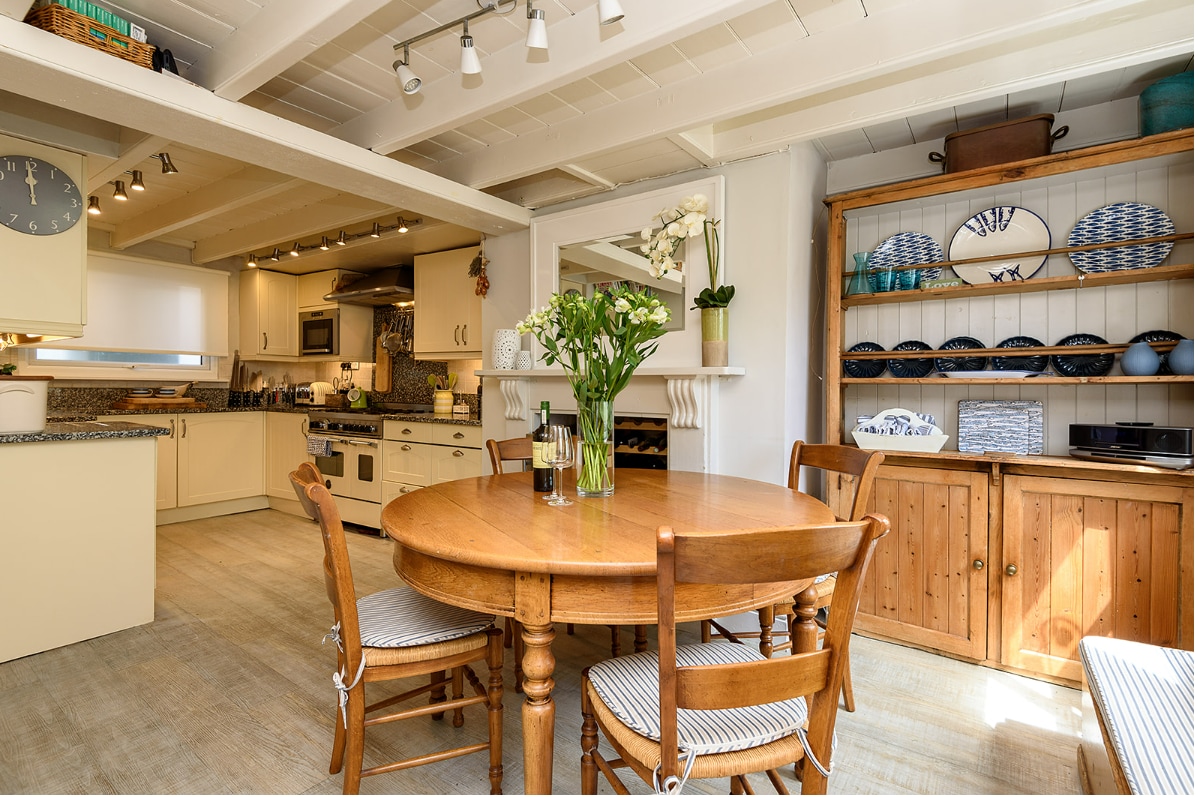 An elevated two bedroom apartment with remarkable unobstructed views of the Harbour, the village and the sea. The Village, Harbour & Beach are a short but steep walk down the lane from Crows Nest. A uniquely modern restoration of an Old Rectory, fitted to the latest standards. Large rooms, big windows and uncluttered furnishings allow for spacious, comfortable living. A private roof terrace allows for al fresco dining overlooking the sea. Private On-site parking. An EV charger is also available