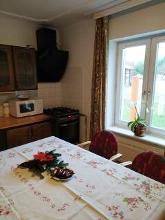 Et hjem med drømmere med utsikt over skogen, som ligger i hjertet av Kashubia, ekstremt komfortabelt og moderne, og koselig, hvor nøye utvalgte møbler og tekstiler lar deg slappe av og slappe av. Et barnevennlig hjem med leker, bøker, spill og en minilekeplass og trampoline. Gjestene vil bli fornøyde med en romslig terrasse med solsenger, en stor hage, en grill, en bålplass og en bålplass. Nærområdet florerer med innsjøer, skog og arkitektoniske monumenter. Huset ligger 30 km fra Gdansk.
