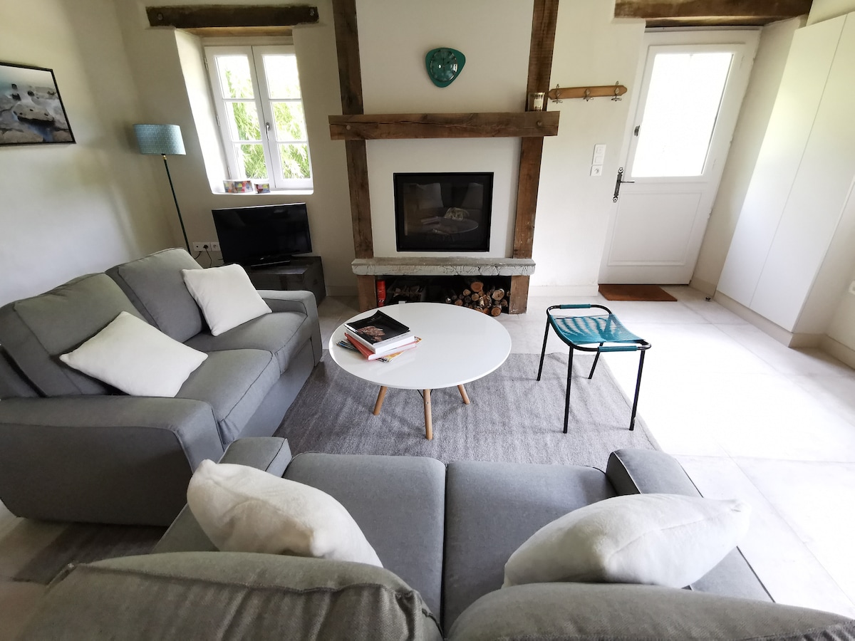 Nylig renovert gårdshus som tilhører herregården ved sjøen. Smakfullt innredet av eier (maler og arkitekt) - fullt utstyrt med alt man trenger på ferie - komfortable soverom med eget bad, vestvendt terrasse med grill, vaske- og vaskemaskiner. Solrik og romslig stue. Télévision, internett, musikkanlegg. Havet ligger tre minutters gange unna. Sjarmerende landsby med marked og supermarked fire minutters kjøring fra huset. Golfbane ti minutter med bil.