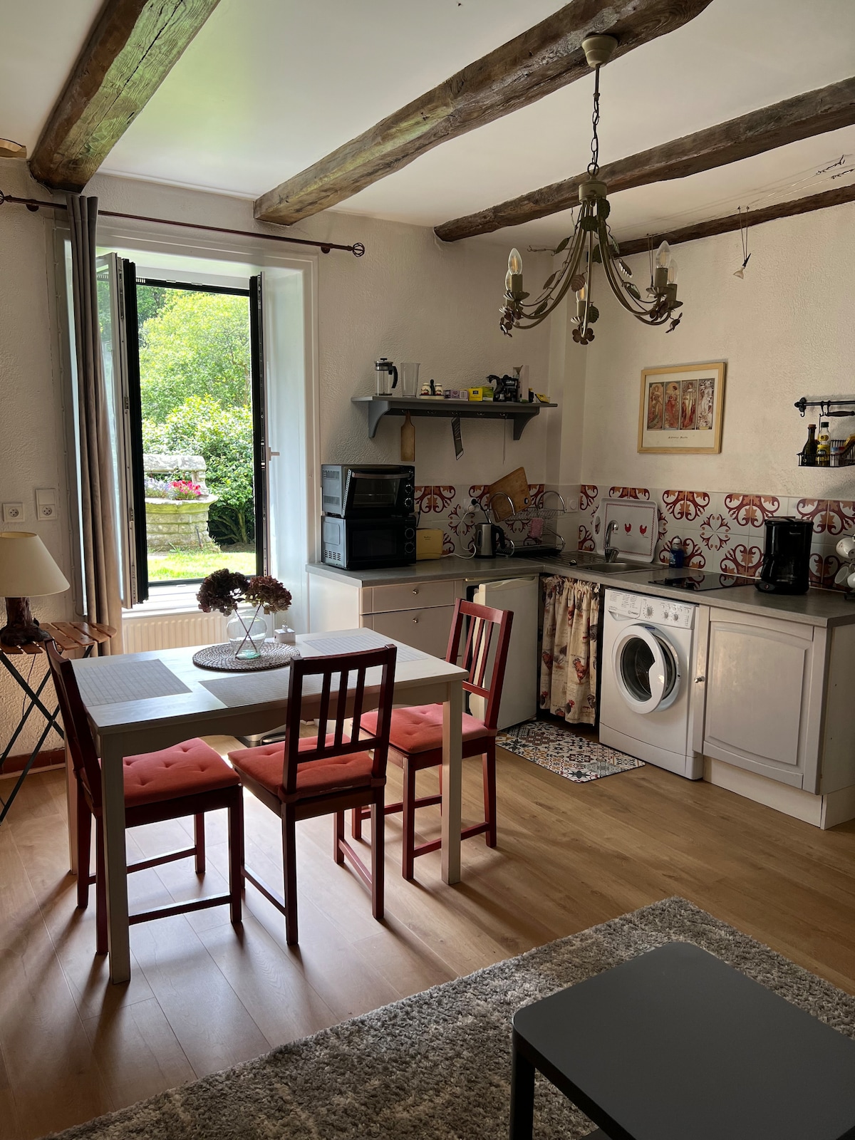 Ligger i første etasje i første etasje i en gammel mølle, ti minutter fra havet, hytta har et soverom med bad, separat toalett og stue med steinpeis. Den har plass til to til tre personer. I et skogkledd miljø har du tilgang til møllens frukthage og elven (Le Moros) som går langs eiendommen. Stille kan du observere mange fugler: hegrer, piverts, ugler. Og med litt flaks kommer du ansikt til ansikt med hjortene.
