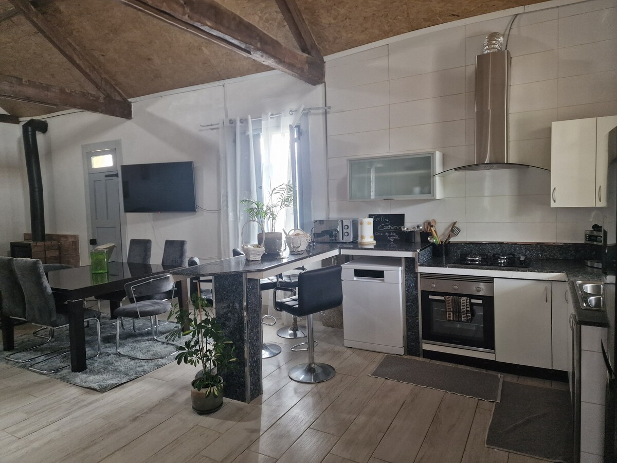 Sjarmerende steinhus med en varm og koselig atmosfære, forberedt for maksimalt 6 personer, utstyrt med boblebad, peis, hage og overbygd steininteriør, vakre hjørner, spotlight, spinning sykkel, usb på kjøkken og stue, garasje, innvendig hage, ved siden av Santiago https://www.facebook.com/francisco1314/