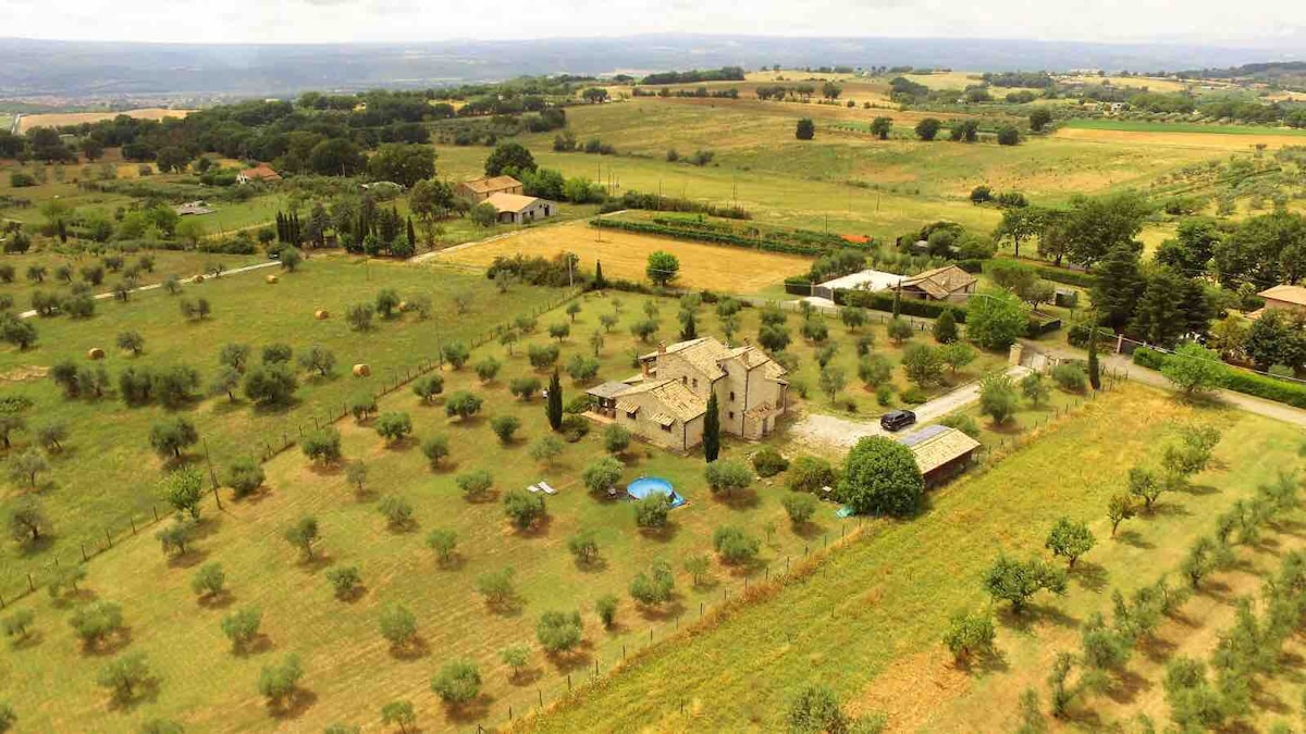 Fortryllende, eksklusiv eiendom på 10 mål på en høyde, minneverdige solnedganger, stort basseng omgitt av lavendel og rosmarin, åpent året rundt. Nytt klimaanlegg, Starlink internett. Veldig privat og fredelig to etasjer, fire soverom, fire bad, boblebad, 55 tommers smart-TV, velutstyrt kjøkken, veranda og pergola for uteservering, Weber-grill, pizzaovn, olivenlund, peis; 20 minutter til Orvieto,Todi,Amelia; 10 minutters kjøretur til togstasjonen til Roma/Firenze, 5 minutters kjøretur til butikker i byen. Hage/bassengvaktør