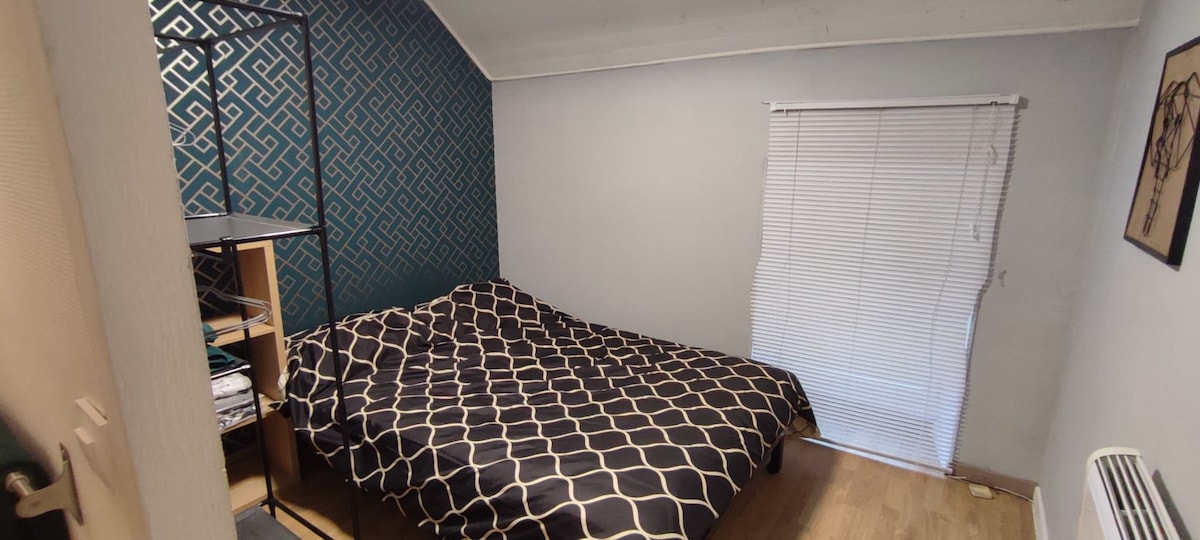 Beliggende hus i stein i triplex, ideelt for dine profesjonelle reiser (nær PIPA, CN Bugey og Creys-Malville) eller et naturlig eller sportslig opphold (nær en kunstig kajakk-elv), i rolige omgivelser, men nær sentrum. butikker og restauranter innen gangavstand, supermarkeder i byen, gratis parkering i nærheten. I første etasje, en seng 140x200; i andre etasje en seng 140x200 og en seng 90x180.