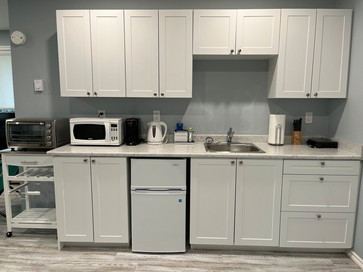 Len deg tilbake og slapp av i denne splitter nye, rolige og stilige studiosuiten som er tilgjengelig for opphold på over 30 dager, bare noen skritt fra en lang sandstrand. Suiten er gjennomtenkt møblert og klar til å flytte inn i. Den er ideell for profesjonelle, kontraktsarbeid eller lengre opphold ved kysten, og den tilbyr rolige omgivelser med enkel tilgang til fasiliteter, stier og strandliv i Port Hardy.