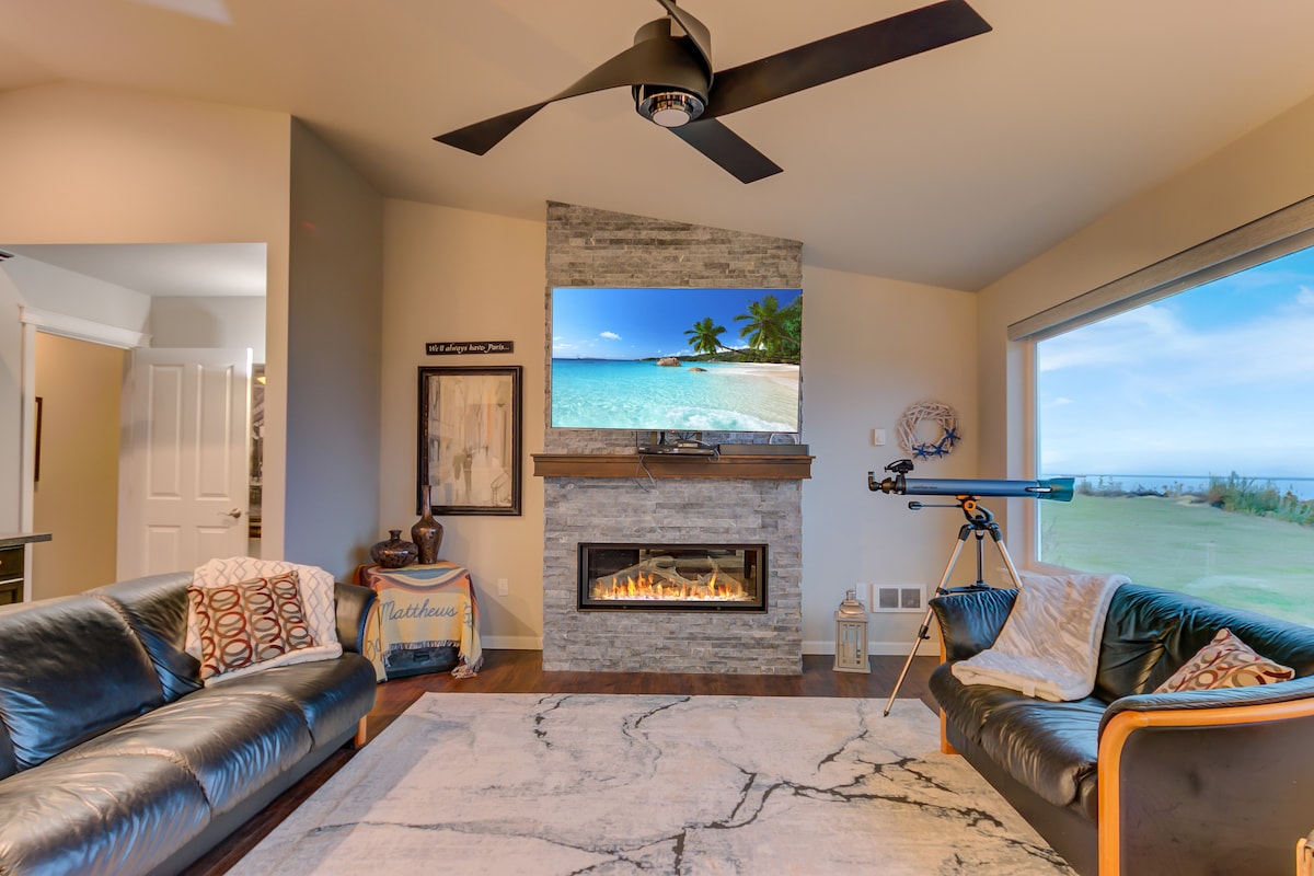 Fantastisk utsikt over Juan de Fuca-stredet og Victoria hilser deg hver strålende morgen, eller når du sitter og ser på cruiseskip som deler de fantastiske kvelds-solnedgangene. Slapp av og nyt den spektakulære utsikten fra dette nyere 3 BR-3BA-hjemmet på brinken i Port Angeles, som komfortabelt har plass til seks og kan støtte opptil åtte. Alle moderne bekvemmeligheter er tilgjengelige (fem TV-er, strømming, gassmatlaging, grill, bålplass). Sentralt plassert – Downtown Port Angeles og Olympic National Park ligger alle en kort kjøretur unna.