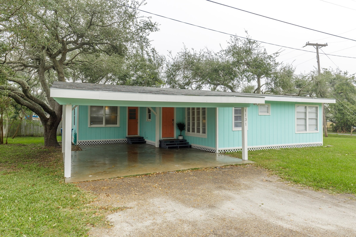 Velkommen til The Blue Pearl - din unike utflukt i hjertet av "Old Town" Port Aransas! ~ Fantastisk oase i bakgården med PRIVAT basseng! ~ Ett nivå, fullt utstyrt kjøkken, privat vaskemaskin/tørketrommel. ~Unik beliggenhet med gangavstand til stasjonen St. Pier, restauranter, butikker, Fisherman's Wharf og stranden. ~ Golfbilvennlig beliggenhet! ~Privat veranda og hageområde med komfortable sitteplasser ~ Privat frittstående spillrom med TV, barområde og spill som biljardbord, darttavle og cornhole.