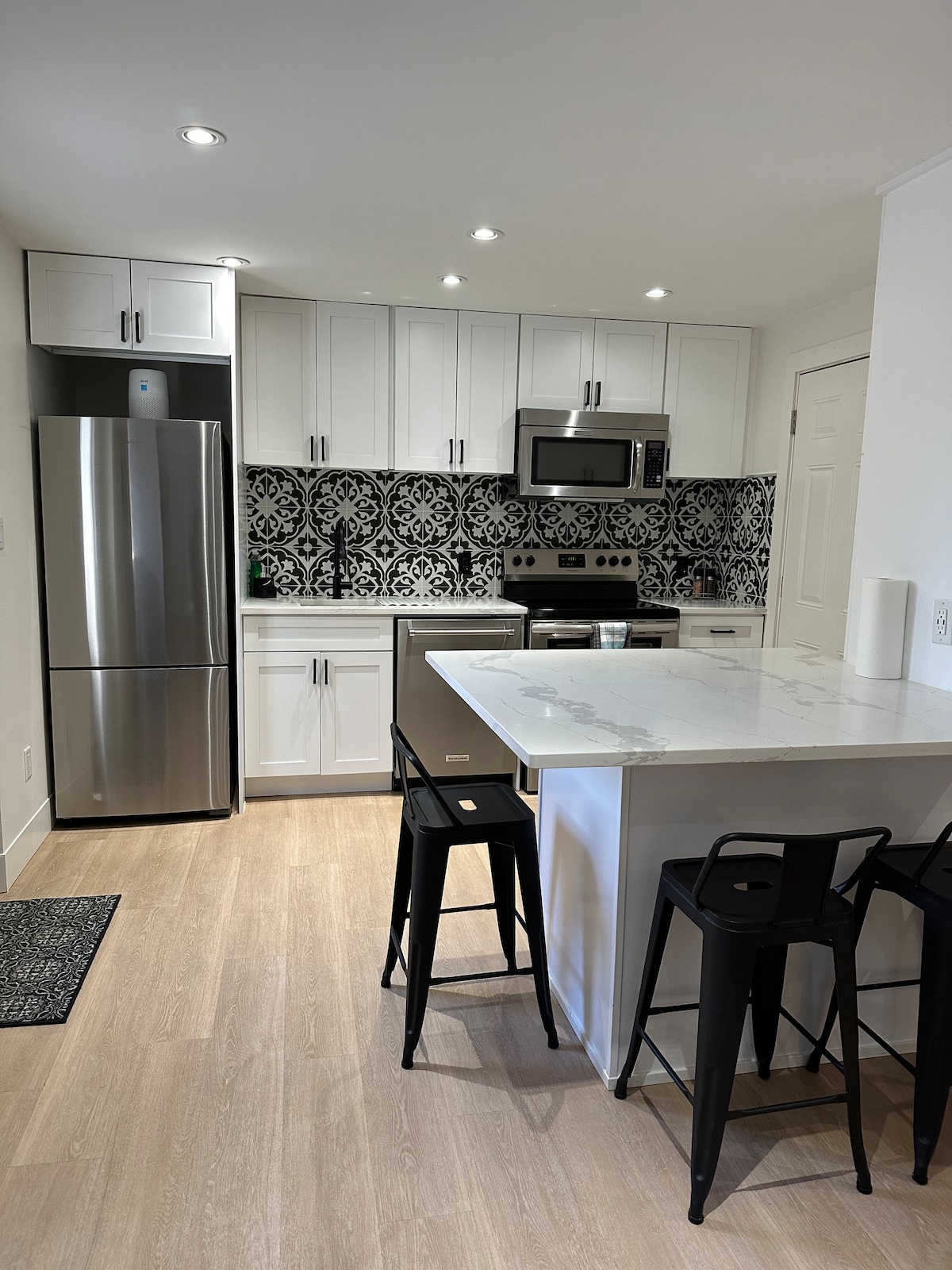 Velkommen til den koselige, private suiten vår i første etasje, perfekt for et fredelig opphold med enkel tilgang til alle nødvendigheter. Nyt et fullt utstyrt kjøkken, romslig stue med sovesofa, skrivebord og et soverom med en komfortabel queensize-seng. Nyt en elegant, åpen dusj, god belysning over vasken og gratis sjampo og dusjsåpe for et komfortabelt opphold. Beliggenheten er bare noen minutter unna restauranter, parker, Costco og motorveien. Et rolig tilfluktssted med alt du trenger for et komfortabelt opphold!