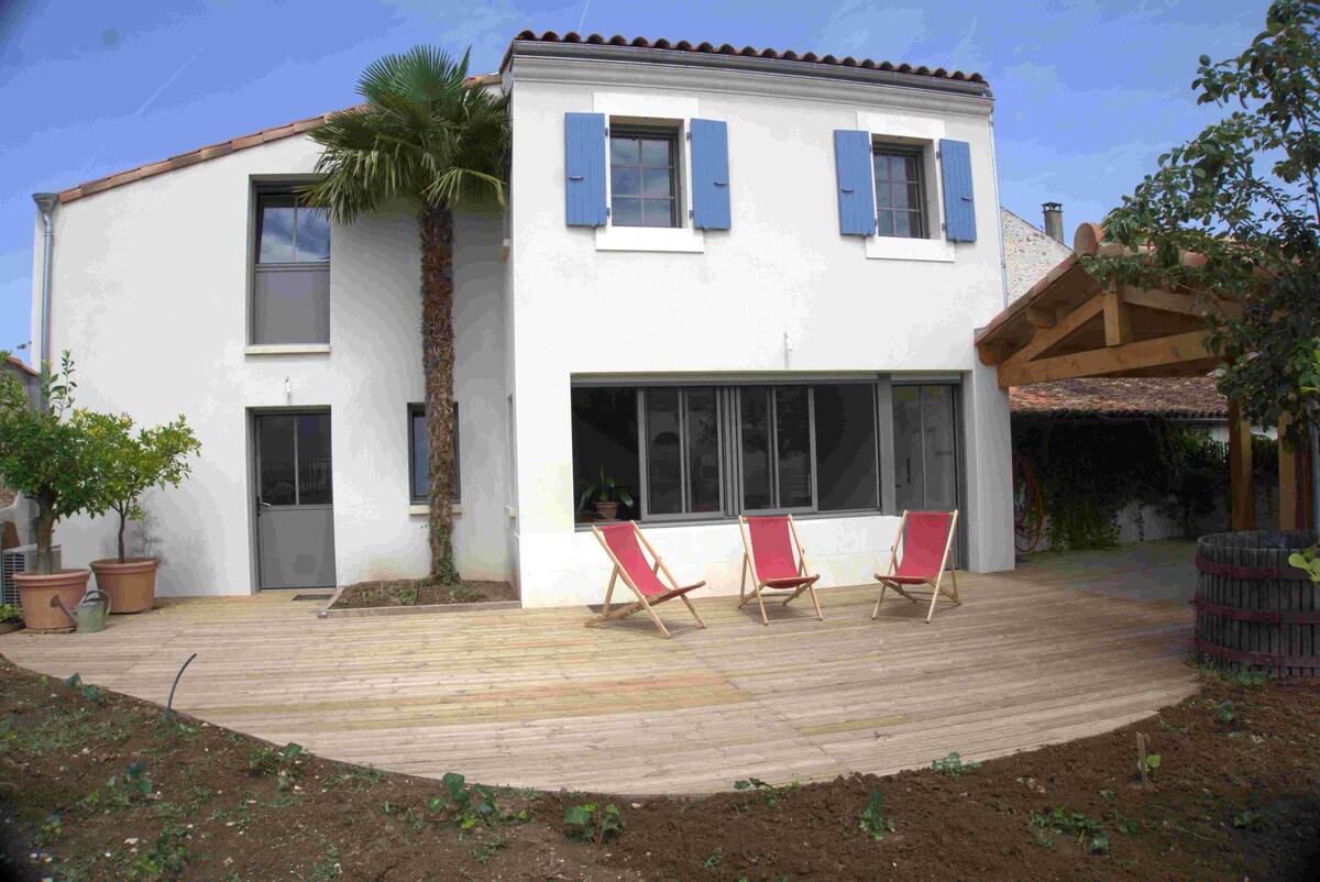 Sjarmerende og bohemsk pause i hjertet av Saintes! En ferieatmosfære i hjertet av byen, med terrasse og blåregn🌸 Pakk bagasjen din i dette lyse langhuset for et fredelig og vennlig opphold med familie eller venner.👝🎒 Den sentrale beliggenheten lar deg oppdage de viktigste skattene i byen til fots: de gallo-romerske ruinene, inkludert amfiteateret, bredden av Charente, markedene og de vakre smugene. På utkikk etter en spasertur til stranden, er havet en 45' kjøretur unna. 🏄♂️