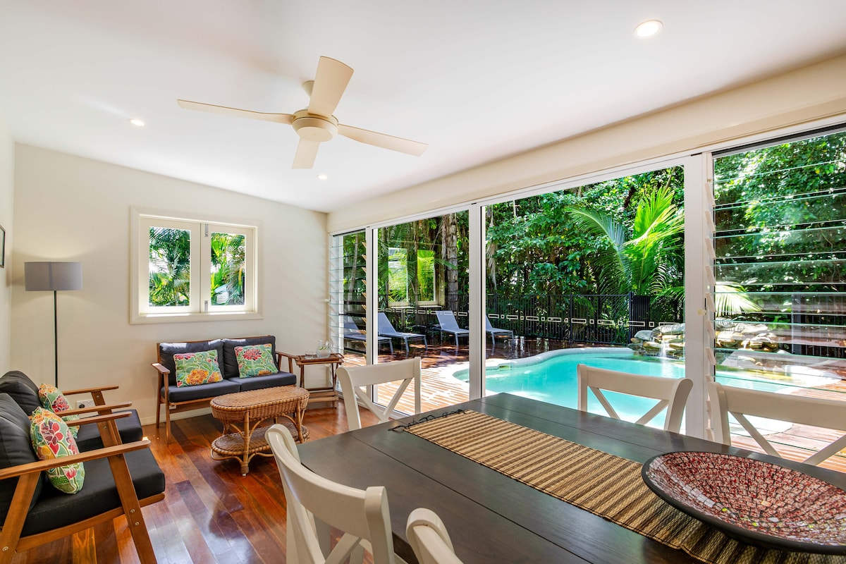 Reis til den rolige, grønne forstaden Palm Cove og nyt en moderne, åpen planløsning på House Heliconia. Med enkel tilgang til stranden og det lokale kjøpesenteret til fots, er denne fantastiske ferieboligen det perfekte feriestedet for familier og venner. House Heliconia har fire romslige soverom og to bad, og har komfortabelt plass til opptil åtte gjester. Det stilige interiøret er vakkert designet med høye tak og store vinduer som slipper inn naturlig lys.