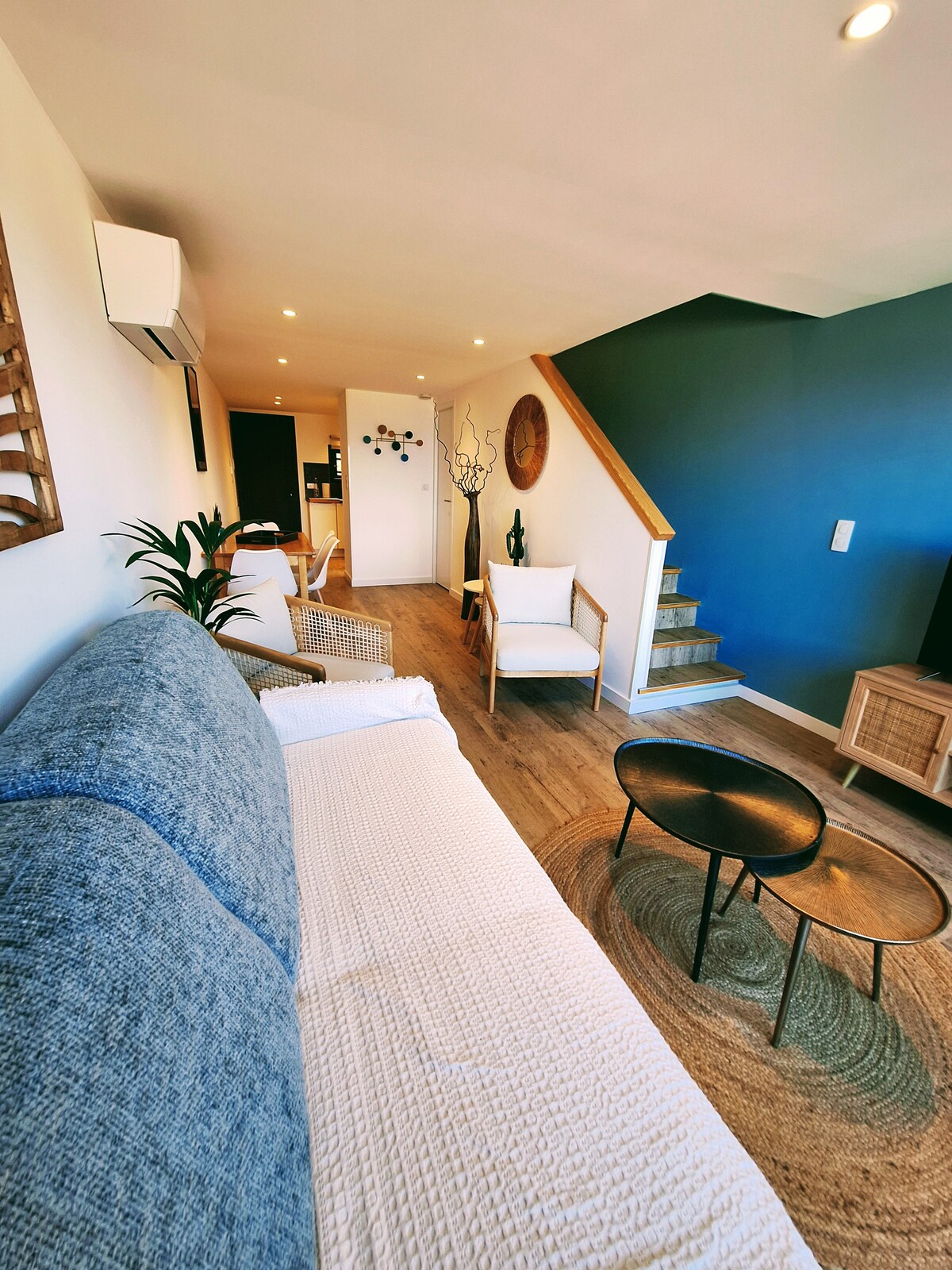 Kom og slapp av i denne kokongen ved havet, eksepsjonell utsikt, balneoterapi for et avslappende øyeblikk, overhead-projektor for en filmkveld, våkne opp til rytmen av en uforglemmelig soloppgang. Alt er tilgjengelig for din komfort: sengetøy, basisvarer, rengjøring ved slutten av oppholdet. 💞 For et unikt øyeblikk tilbyr vi tilpassede pakker på forespørsel. ⚠️ Studioleiligheten ligger i fjerde etasje, hold deg i form🏋️, du vil nyte en av de beste utsiktene❤️.