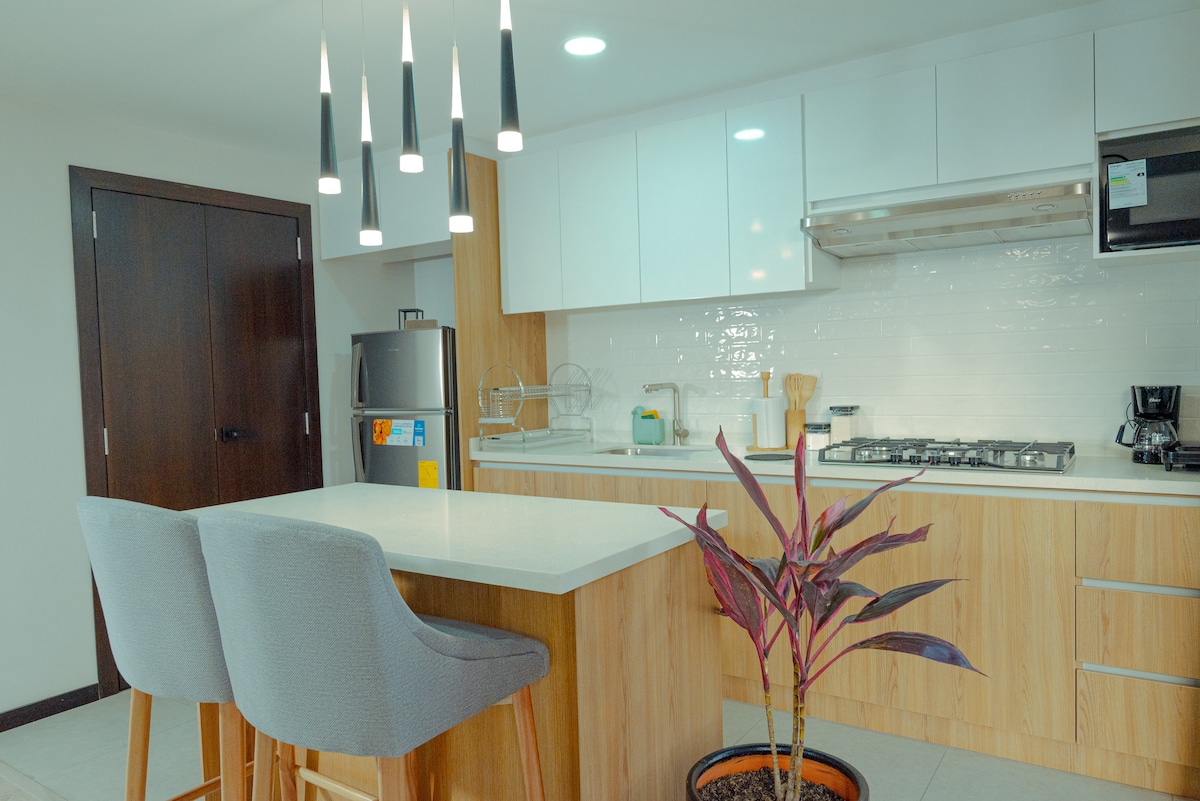 Absorb the warmth and light of open-plan living, with luxurious 9-foot bedroom ceilings, a 20-foot vaulted ceiling with skylight in the common/kitchen area, and oversized windows throughout for a peaceful, quiet, and relaxing stay in Cuenca. ⚡️ 24/7 hot water, Wi-Fi, and electricity for your devices thanks to our grid-tied backup battery system. Note: some high-power appliances like the blow-drier and water kettle do not work during power outages.