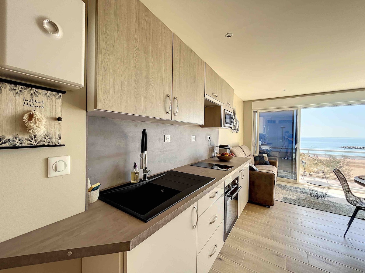 Fullt renovert leilighet på 25 kvm med ett soverom (T2) som ligger i første etasje, bare 80 meter fra stranden, i et rolig og familievennlig badeområde. I Portiragnes er parkering gratis. Gaten er kun for beboere og er enveis, noe som sikrer fred og enkel tilgang. Alle butikker ligger innenfor gangavstand: bakeri, dagligvarebutikk, supermarked, fiskehandler, tobakkssjappe/avisagent, samt restauranter og barer. Små hunder aksepteres på forespørsel. Sengetøy og håndklær er tilgjengelig.