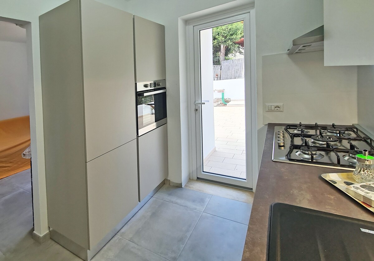 Leiligheten med utsikt over hagen og landsbygda er det ideelle stedet å slappe av etter en dag ved sjøen, veldig koselig og velholdt, med mykt lys, lamper og lykter, og en utendørs veranda hvor du kan spise middag om kvelden eller spise frokost om morgenen og føle bølgene i havet når det er sirocco, omgitt av en veldig velholdt hage med middelhavsvegetasjon: oliventrær, jordbærtrær, rosmarin, mastik og frukttrær: her kan du føle stillheten og duften av naturen