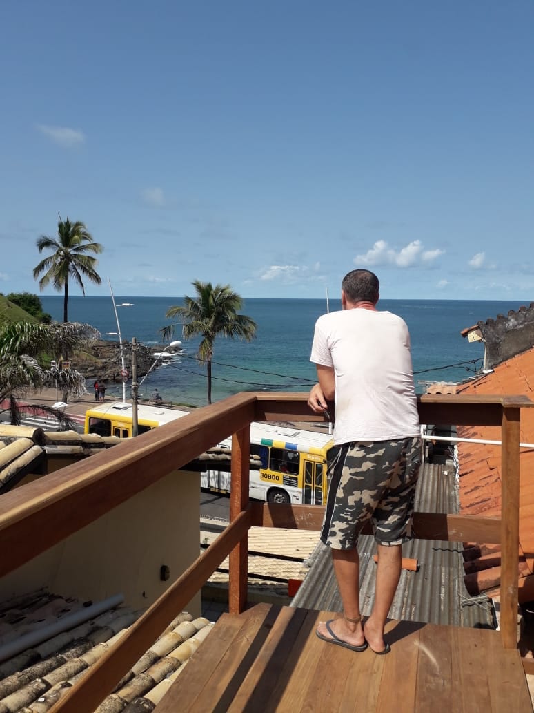 Boutique-opplevelsen Oppdag denne fargerike, kunstneriske ferien med utsikt over Todos os Santos-bukten. Få eksklusiv tilgang til tredje etasje med et koselig soverom, en stilig stue og en liten utendørs kjøkkenkrok. Slapp av på taket med badekar og utendørs dusj mens du nyter fantastiske solnedganger. Du deler resten av huset med familien min, to vennlige hunder og to katter. Vi tilbyr en deilig frokost på hovedkjøkkenet.
