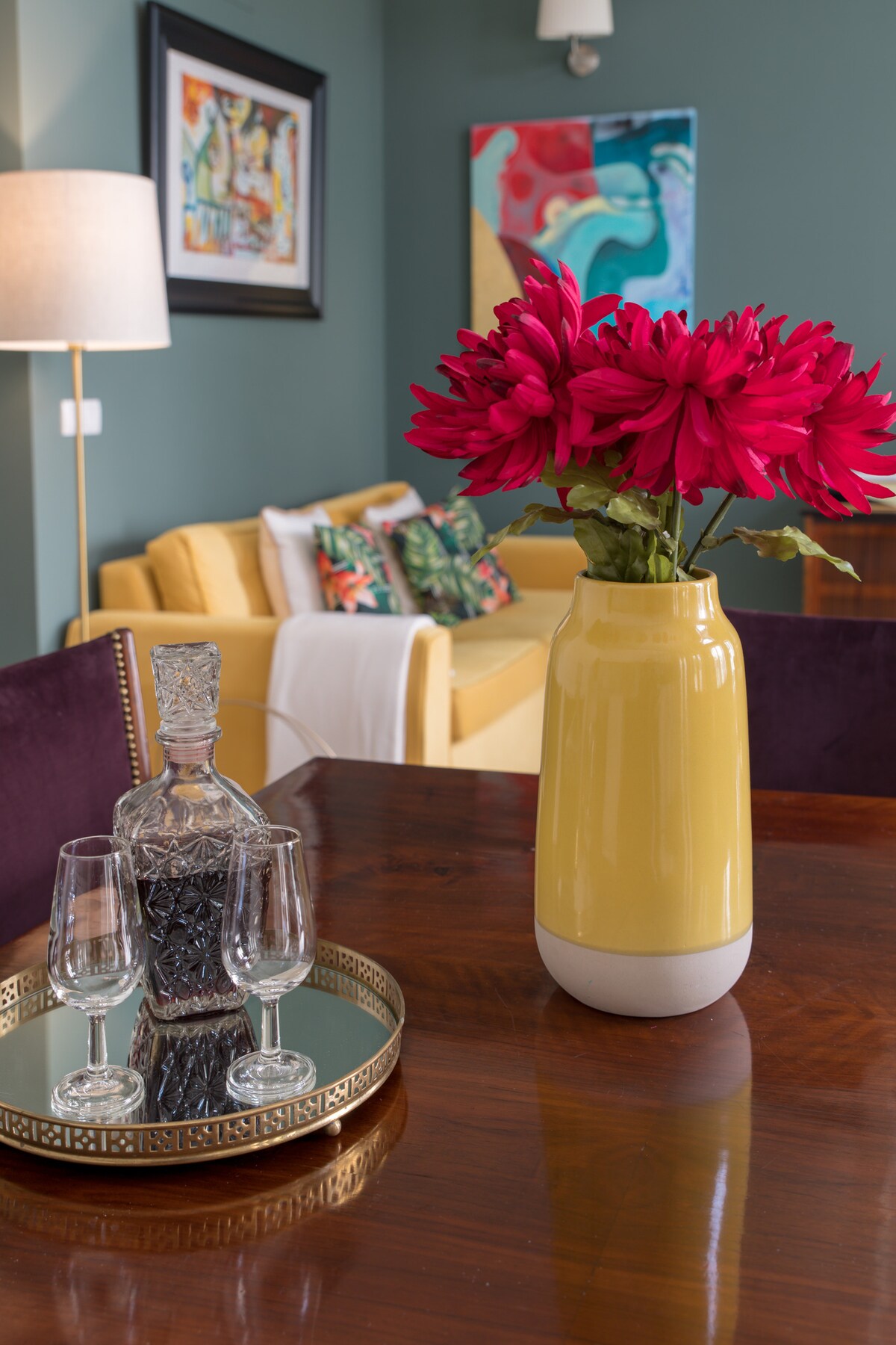 Len deg tilbake på den sitrongule sofaen og beundre den livlige, abstrakte kunsten i denne fredelige leiligheten i toppetasjen i bakgården til en bygning fra 1800-tallet. Trekk frem en plommefarget spisestol i fløyel for en avslappet middag, eller gå ut på den avsidesliggende balkongen.