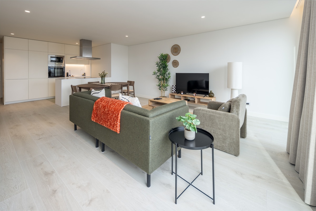 NY luksusleilighet i privat leilighet med private hager og lekeplass. Parkering inkludert Beliggende i Arrábida, ved siden av den typiske fiskerlandsbyen Afurada, med den beste fisken i regionen. Passform med sentralvarme, kabel-TV, superkomfortable senger Parkeringsplass inkludert 2,5 KM fra Cais de Gaia og Port Wine Cellars 4 KM fra Ribeira do Porto Gaia strender på 5 min. 2.4KM Douro estuar naturreservat