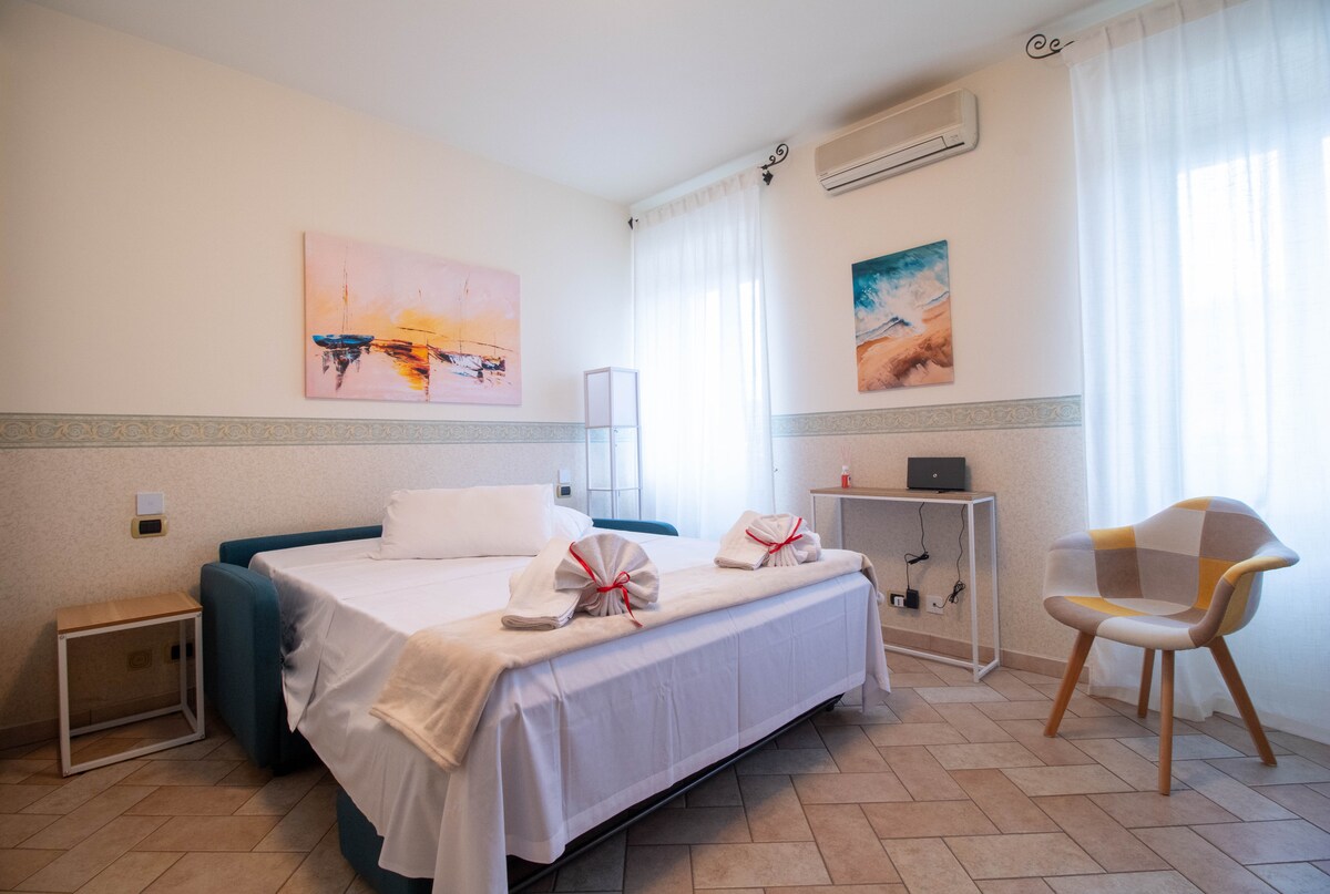Leilighet ved havet med en privat balkong med havutsikt, ideell for par i alle aldre, også de som reiser med barn, og for vinter- og våropphold i et mildt klima. Lyse, godt organiserte interiører med to soverom, raskt trådløst nettverk egnet for fjernarbeid, klimaanlegg og oppvarming, heis og gratis parkering. Direkte tilgang til stranden, bakeri-bar i bygningen og alle tjenester innenfor gangavstand. En perfekt base for å utforske Marche-regionen og landsbyene. Sengetøy er inkludert. Lange opphold er velkomne.