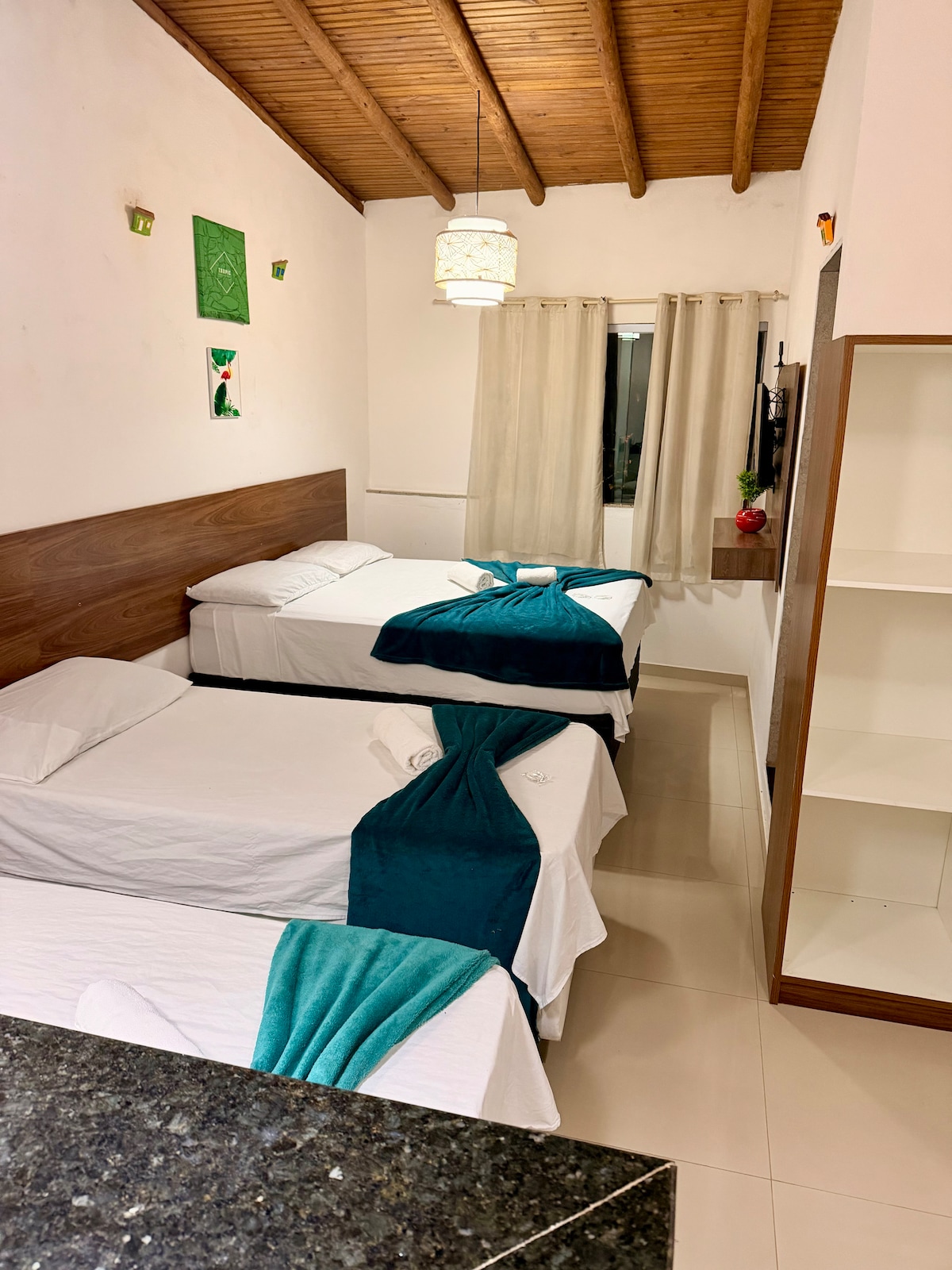 Sjarmerende loft med ekstra komfortabel kingsize-seng. Praktisk og trygg beliggenhet 100 meter fra Araçaipe-stranden. Stedet ligger på Balsa-veien, ved siden av flere restauranter, supermarked og foran Araçaipe-stranden. Parkeringsplass er tilgjengelig foran loftet. Kjøkkenet er komplett med alle grunnleggende redskaper. TV 50' pg og klimaanlegg. Merk: gjester med lett søvn, stedet er travelt og det er mulighet for støy. * Strøm belastes separat*.