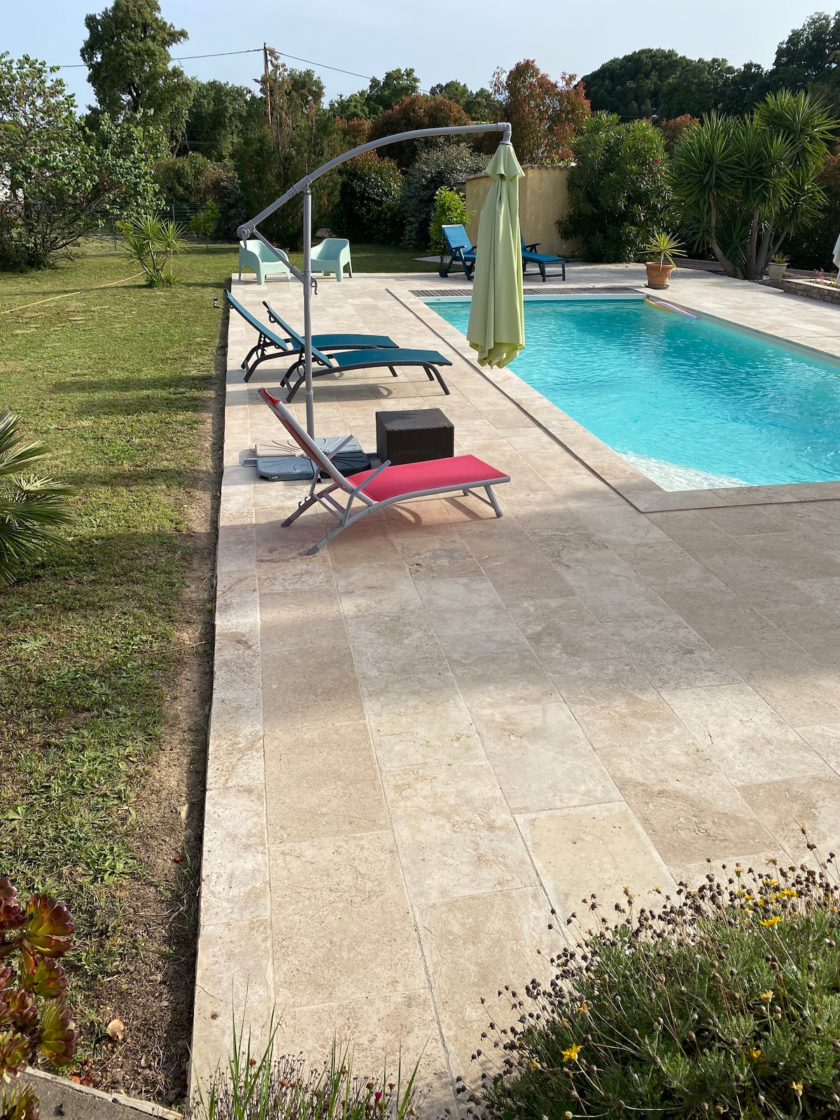 Romslig leilighet på 55 m² med to soverom ved siden av hovedboligen, moderne, med aircondition, privat terrasse på 20 m² med bord og hagemøbler. Leiligheten består av et stort soverom med en queensize-seng på 160 × 200, en stue med en ekte sovesofa på 140 cm, et fullt utstyrt kjøkken i amerikansk stil, et bad med walk-in-dusj, vegghengt toalett og én vask. Tilgang til svømmebassenget på 10 m × 4 m med strand og solseng, tilgjengelig fra mai til september, avhengig av været. Egen inngang, gratis overbygd parkering.