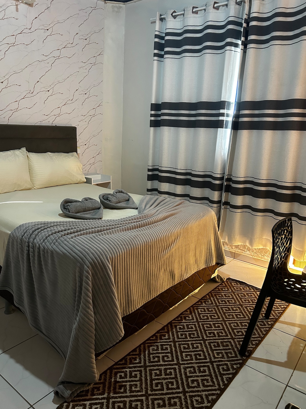 Suiten vår ble designet for de som søker komfort, privatliv og praktiskhet. Atmosfæren er luftkondisjonert, stille og koselig, med LED-belysning som gir velvære og varme. Den har et komplett hjemmekontor, ergonomisk svingbord og stol, trådløst nettverk med høy hastighet, smart-TV, minibar og varm dusj. Den har en garasje i den indre gårdsplassen og ligger bare minutter fra Porto Velho Shopping, med enkel tilgang til butikker og tjenester. Perfekt for jobb, hvile eller langvarige opphold.