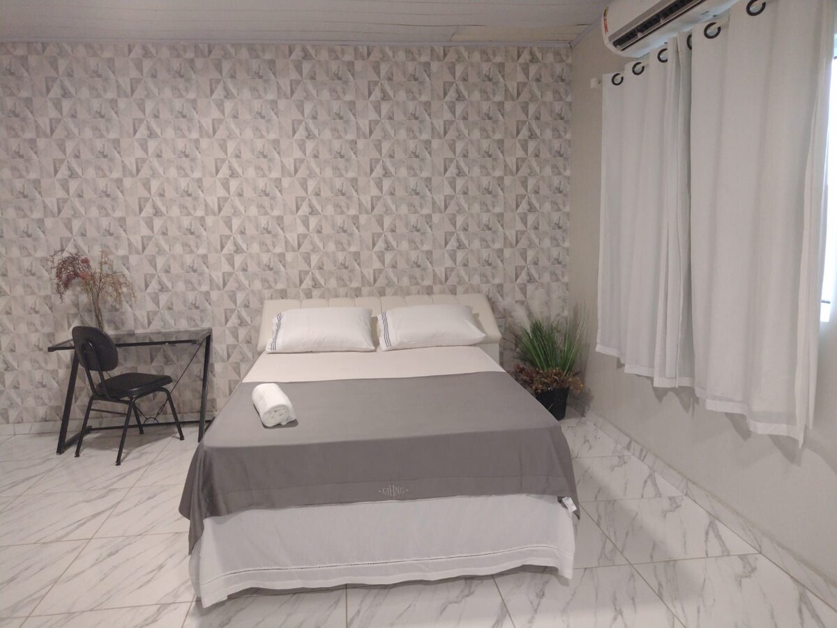 Koselig hus, to dobbeltsenger og sovesofa, beliggende midt i byen, ved siden av kjøpesenteret og busstasjonen. Bak to apoteker, med døgnåpen vaskeri bare noen få meter unna. Enkel tilgang til flyplassen og nær Base Hospital. Ideelt for deg som ønsker praktisk, komfortabel og flott beliggenhet for deg som er på forretningsreise eller ferie i byen! Bairro Seguro!!
