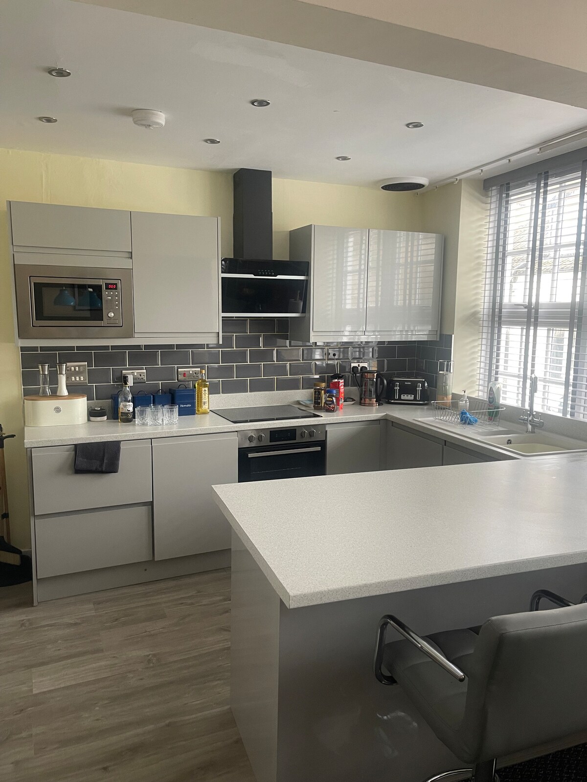 The Love Hub is designed for couples to enjoy. Light the log burner and cozy up together on the couch. The garden you can sit out and light up the Fire pit and BBQ and wine! The Star Portal room, you can cozy up in a double bed with glass ceiling where you can look up to the Stars at night. There is a private wood fired 8 person Hot Tub with disco ball and Cinema Projector with Netflix, Prime and Disney+. In the evening he Love Hub has amazing lighting and sets the mood for an amazing night.