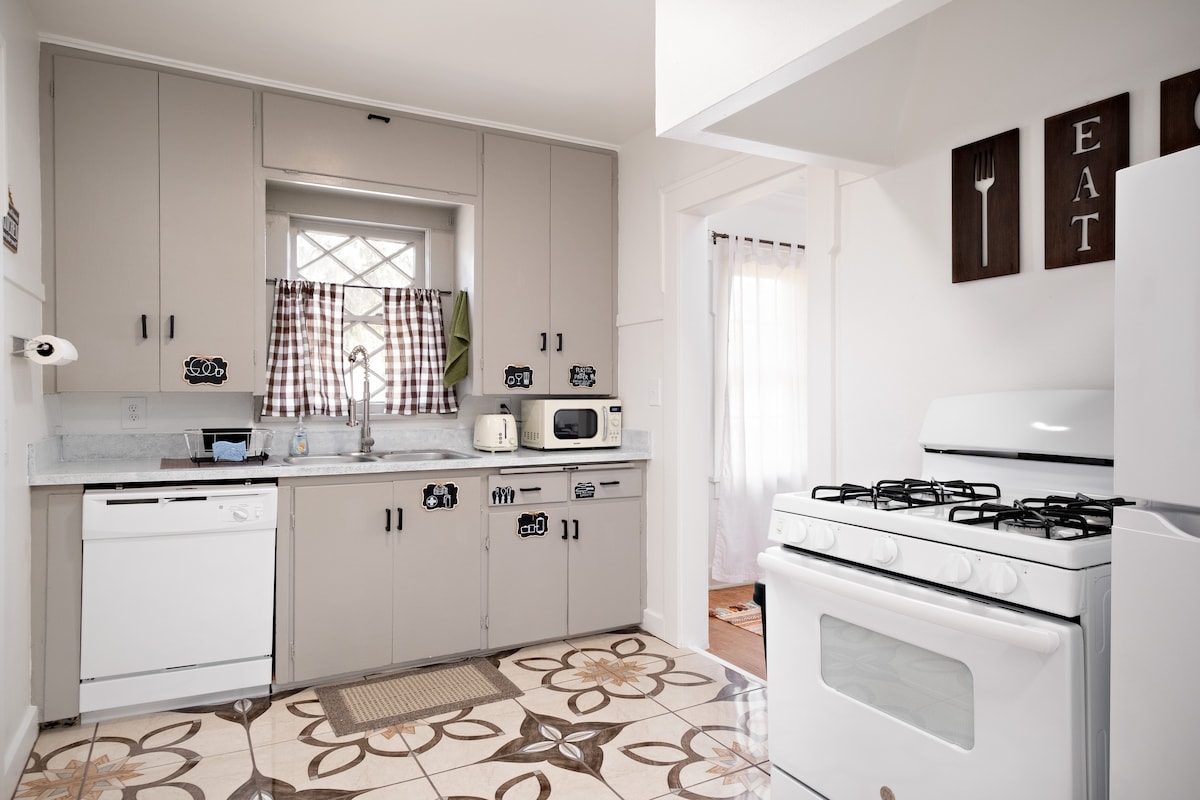 Kos deg på dette koselige, unike og rolige feriestedet på 575 kvadratfot. Det ligger 1,5 kvartaler fra Route 66, i enden av en lang, dobbeltbred oppkjørsel. Starten er bratt, og det er litt skrått å kjøre opp og ned. Det ene soverommet har en queensize-seng, og det andre har en enkeltseng. Nyt solnedgangen på baksiden av terrassen. En 50 tommers smart-TV er i stuen. Lag kaffen eller teen din og nyt boksene med kanelboller i kjøleskapet som er klare til å bakes. Spaser nedover Route 66 med de mange antikvitetsbutikkene, bokhandlene, restaurantene og barene.