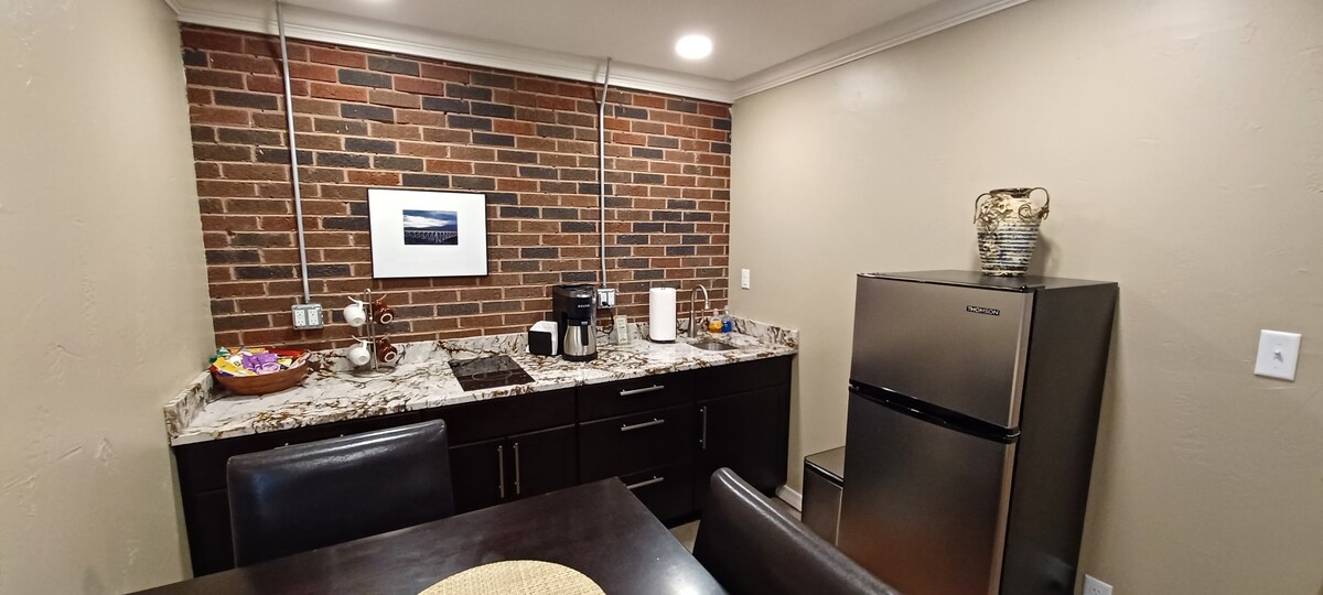 Enjoy this cozy, unique, 575 sqft tranquil getaway. It’s 1 1/2 blocks from Route 66 back at the end of a long, double wide driveway. The start is steep, drive up and down it a little slanted. One bedroom has a queen, and the other a twin bed. Enjoy the sunset on the back deck. A 50 inch smart tv is in the living room. Make your coffee or tea and enjoy the can of cinnamon rolls in the refrigerator ready to bake. Stroll down Route 66, with its many antique shops, bookstores, restaurants, + bars.