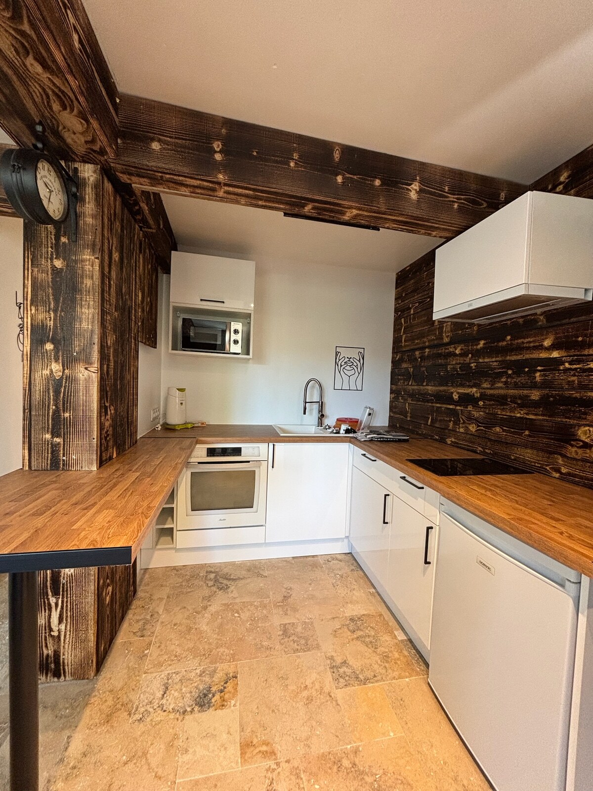 En fjellhytte på Roanne Tenk deg… et ekstraordinært studio som umiddelbart transporterer deg til den beroligende atmosfæren i fjellet. Du skyver døren opp og oppdager en varm kokong, hvor naturlig treverk og fjellinnredning skaper en intim og betryggende atmosfære.