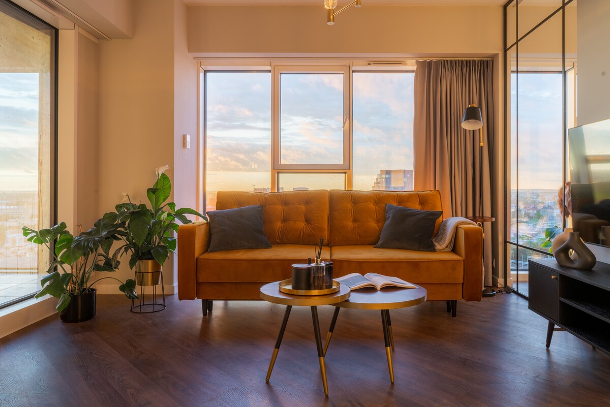 Vi inviterer deg til en moderne leilighet i det prestisjetunge byparkkomplekset. Designmessig møblert, designet med oppmerksomhet på hver eneste detalj, er dette en oase av ro midt i det travle hverdagslivet. God energi i leiligheten, som vi tar vare på daglig, sammen med et svømmebasseng, saunaer og treningssenter tilgjengelig for gjester, samt restauranter, shopping og servicelokaler, vil gjøre oppholdet ditt på dette stedet til en fornøyelse. Å tilbringe tid her vil hjelpe deg å slappe av i sinnet etter arbeid og i beina etter lange turer.