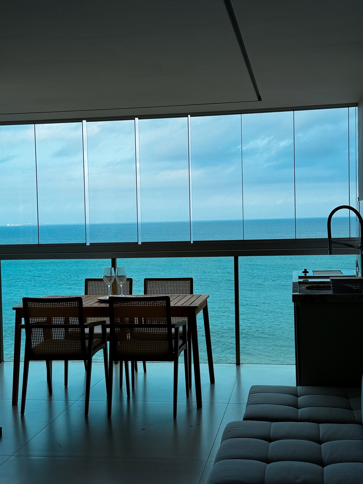 Unik lineær toppleilighet: uteområde, privat basseng, bord, sofa, gassgrill, toalett og havutsikt Stue med 55" TV, kabelkanaler og Netflix Wifi 500 megas Spisestue og sosialt bad. To komplette kjøkken Sengetøy i bomull med 300 tråder/Buddemeyer-håndklær. To bad (queen-seng, dobbeltseng) og aircondition. Ett soverom, to enkeltsenger eller én dobbeltseng og aircondition. Strandsett (stoler, parasoll og termisk cx) 2 plasser Resepsjon døgnet rundt. I Enseada, 300 meter fra stranden, Guarderia/Curva da Jurema