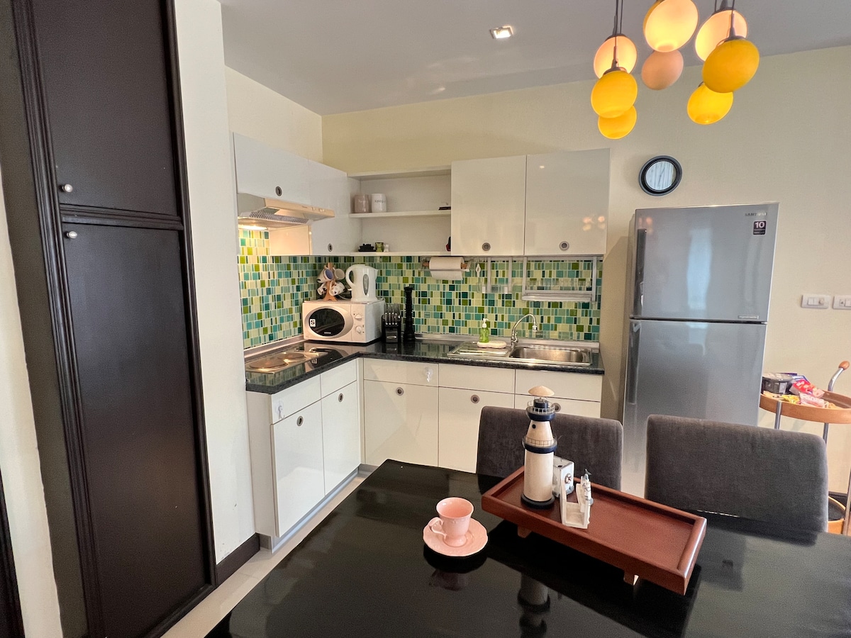 En godt utstyrt leilighet med ett soverom, med alt du trenger for et kort eller langt opphold. Den ligger på stranden, og du har tilgang til Hua Hin-stranden og mange svømmebassenger å velge mellom. I leiligheten er det en kaffetrakter, brødrister, mikrobølgeovn, vannkoker samt en Nespresso-maskin med melkeskummer for morgenens cappuccino. Med mindre du selvfølgelig ønsker å bestille romservice fra hotellet! Enkel tilgang til de nærliggende restaurantene i Khao Takieb.