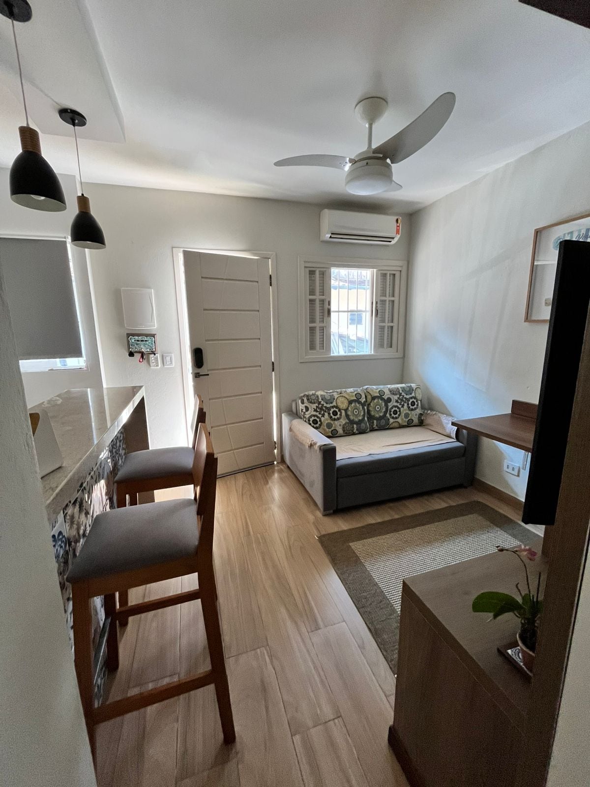 LW Vacation Rentals - Kvalitet og komfort på stranden. Det er tre minutters gange fra stranden i Toninhas. 1,5 km unna Mirante da Praia Grande Hele markedsstrukturen, bakerier, restauranter To soverom (én suite) og ett felles bad Atmosfære med klimaanlegg Grill på balkongen med havutsikt. Fullt utstyrt kjøkken med komfyr, kjøleskap, mikrobølgeovn, blender, smørbrødsgrill. 600 MB fiberoptisk internett. Elektronisk lås Heis med panoramautsikt. To parkeringsplasser.