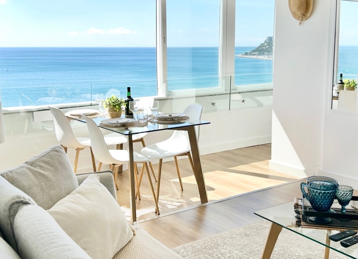 Leilighet ombygd av arkitekt, utmerket privatliv, soleksponering, med wifi og strand på 150 meter. 1 suite med SPA og tyrkisk bad med aromaterapi. 1 suite med terrasse med havutsikt, kino projeksjonsskjerm. Rom med havutsikt, elv og terrasse, hvor du kan nyte et sitteområde og en grill med en smijernsgrill. I nærheten av restauranter, kaffe og supermarkedet, og togstasjonen. Aircondition og varme i alle områder, 4K-TV og uavhengig boks etter suite.