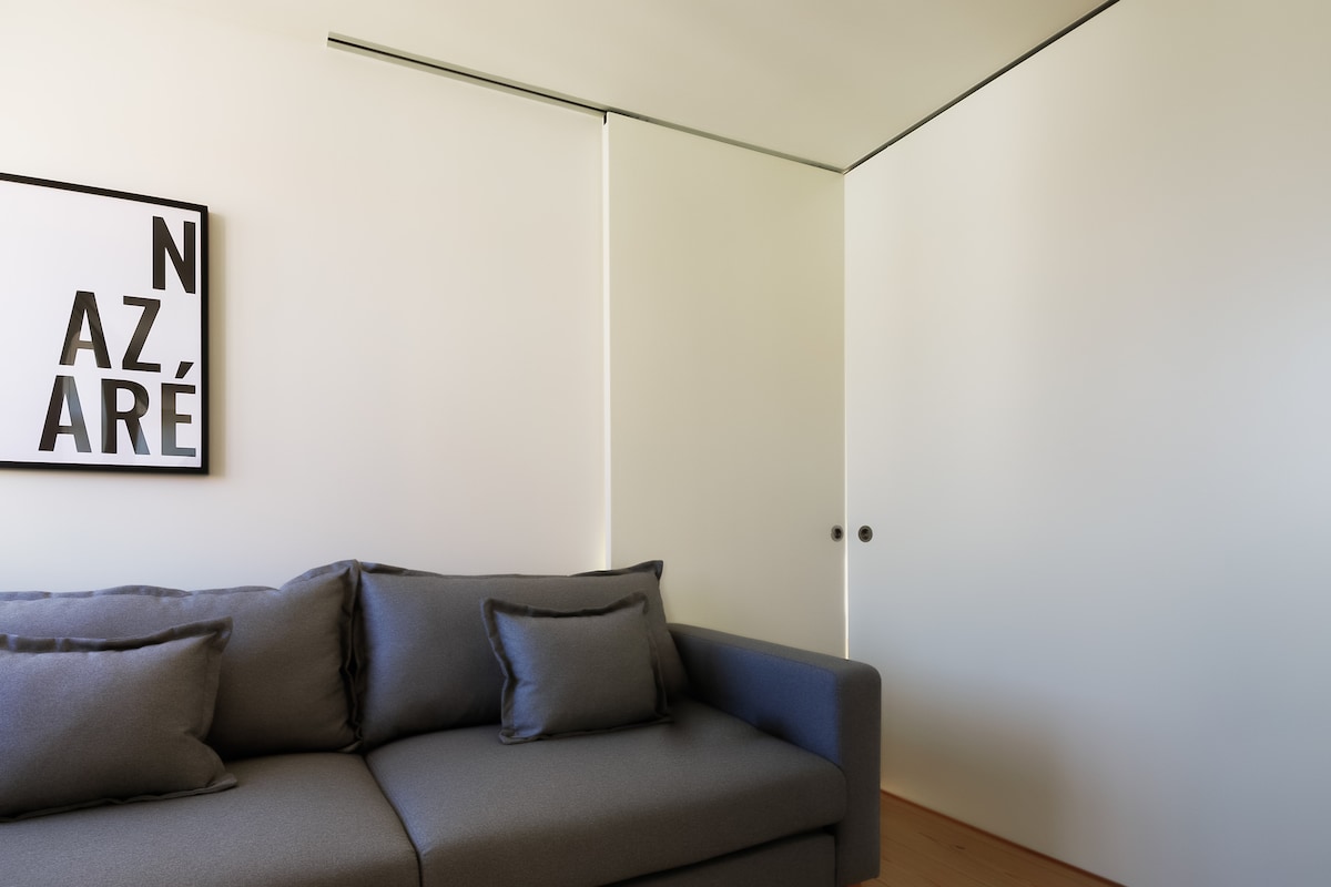 En nyoppusset moderne kyststil. Leilighet med to soverom med spektakulær utsikt over Atlanterhavet og den pittoreske landsbyen Nazaré og dens åser, som ligger i Sitio, et steinkast unna Big Wave Lookout, samt landsbyen Nazaré og dens strender. Enten du ser solen gå opp med en kopp kaffe, eller solen gå ned med et glass vin på balkongen, vil du bli fascinert av omgivelsene dine. Leiligheten passer perfekt for par og familier på ferie, folk som jobber hjemmefra og langvarige opphold.