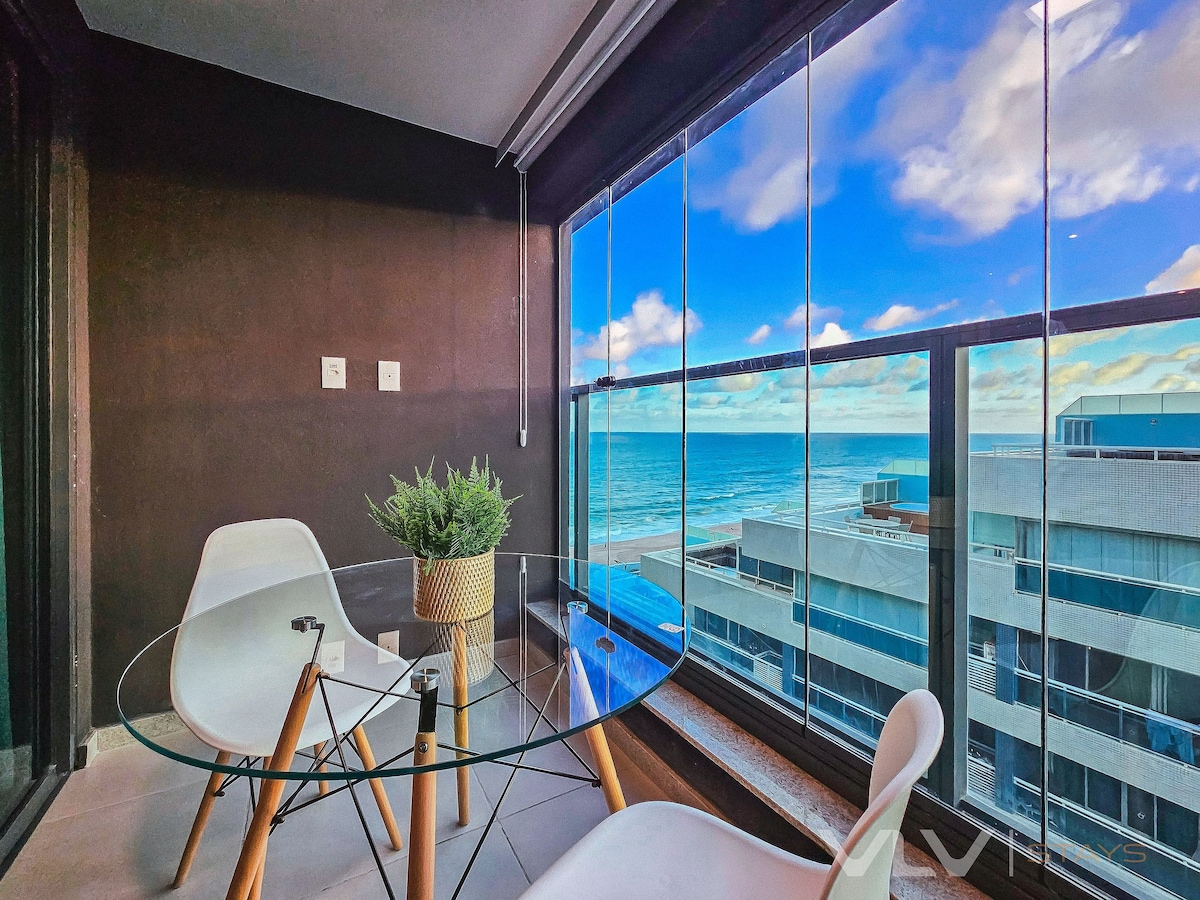 ✨ Luksus, komfort og havutsikt – ditt sofistikerte tilfluktssted i Salvador 🌴 Tenk deg å våkne til den myke lyden av bølger og se havet rett fra vinduet ditt. Her vil du nyte en unik opplevelse i en eksklusiv, elegant og komplett studioleilighet, som ligger i en av de mest sofistikerte bygningene i Salvador. Denne studioleiligheten er perfekt for å slappe av, jobbe eller utforske det beste byen har å by på med stil, og kombinerer absolutt komfort med en uovertruffen struktur.