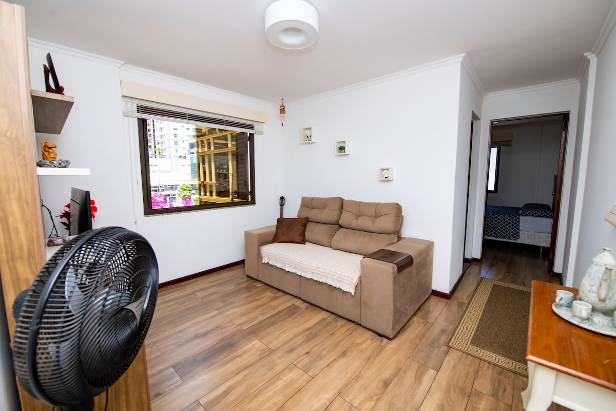 Lounge Apartment, som ligger 5 minutter fra Brava Beach og 10 minutter fra Balneário Camboriú. Beliggenheten er perfekt. Bare fem kvartaler fra stranden. Lukk alle fester og restauranter. Leilighet med komplett infra, basseng, treningsstudio, damp og fem griller. Leiligheten har fjellvendt jacuzzi med vann- og kromoterapi. Perfekt for å slappe av eller ta deg tid til å slappe av. Den har 58 'smart TV i stuen og 40' i soverommet. Komplett kjøkken. Maskinvask og tørker. Du kommer til å elske dette stedet.