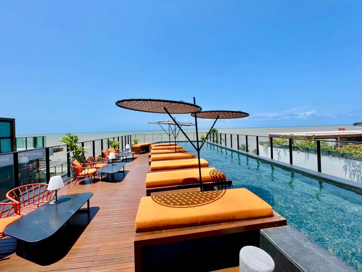 Romantisk toppleilighet ved stranden med privat basseng.