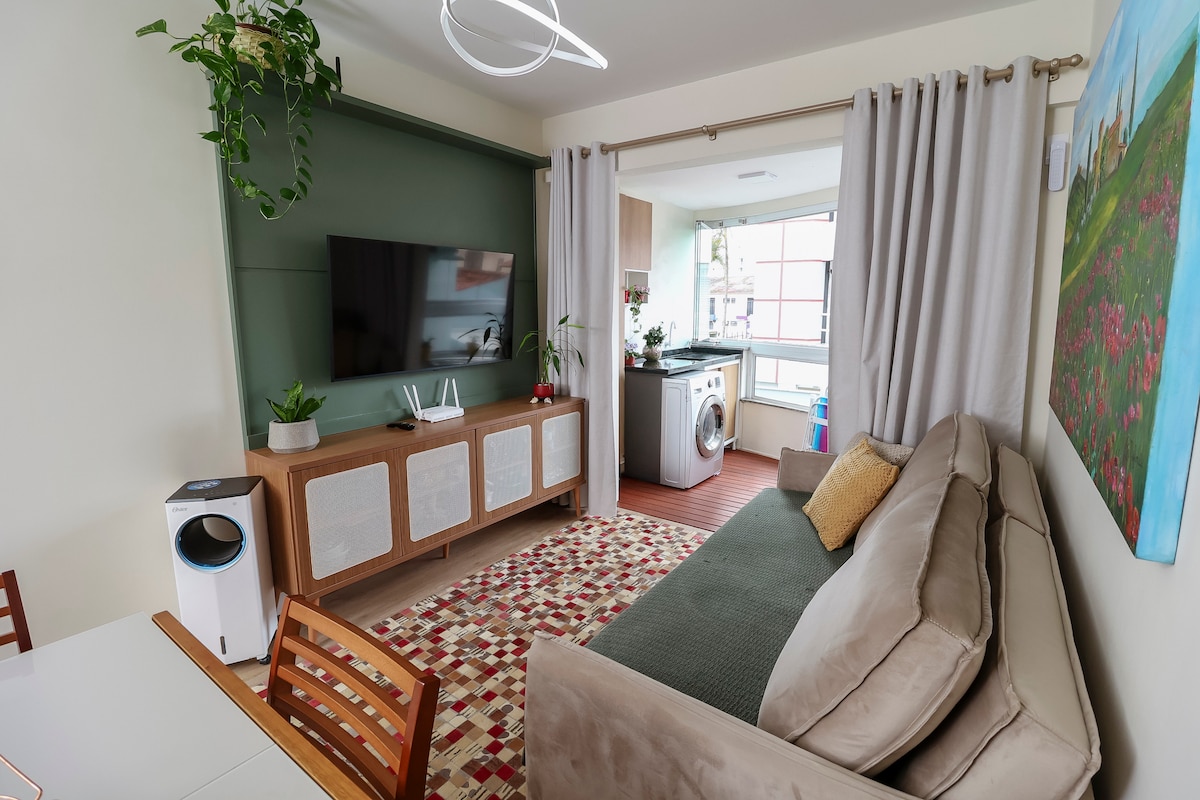 Ny og innredet studio, bare 50 m fra den rolige stranden i Jurerê Tradicional og i nærheten av sjarmerende Canajurê. Ideelt for dem som søker ro og samtidig ønsker å være i nærheten av det travle Jurerê Internacional. Familieeie, trygt og omgitt av natur – hvor du våkner til lyden av fugler og avslutter dagen med å nyte solnedgangen på sanden. Kompakt, koselig sted med en eksklusiv parkeringsplass.