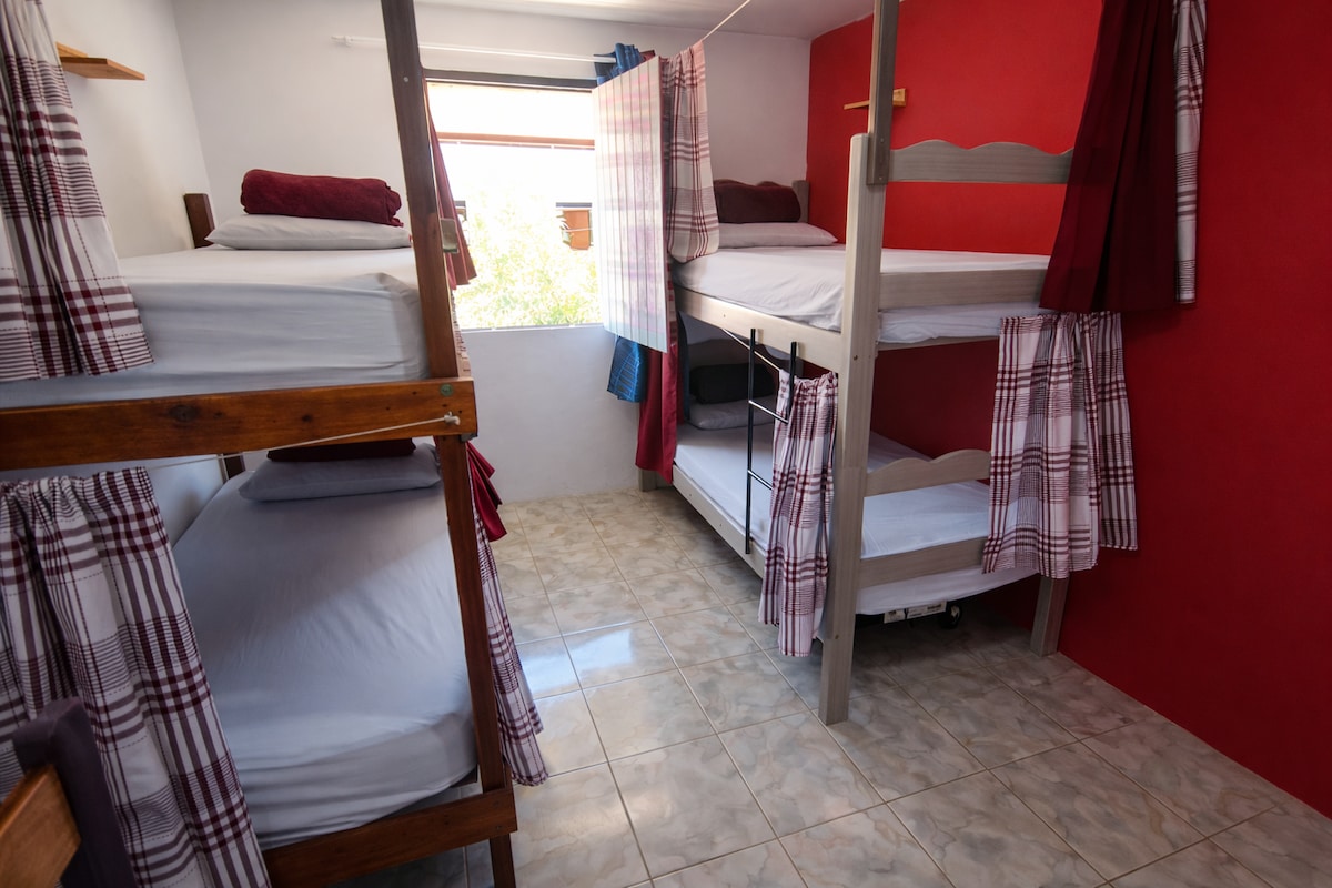 Vi leier ut per seng på et delt rom med andre reisende. Ideelt for dem som ønsker praktiske overnattingssteder og en avslappet atmosfære. Stedet er stort og godt ventilert, med vifter og et privat skap med nøkkel. Du får nøklene til inngangsdøren og skapet. Sengen har et stramt sengeteppe og et laken. Håndkle tilgjengelig for leie (R$ 10). Kjøkkenet er åpent kl. 07.00–20.00, og terrassen er åpen kl. 10.00–20.00. Enkelt og ryddig miljø, perfekt for å dele opplevelser og få nye venner.