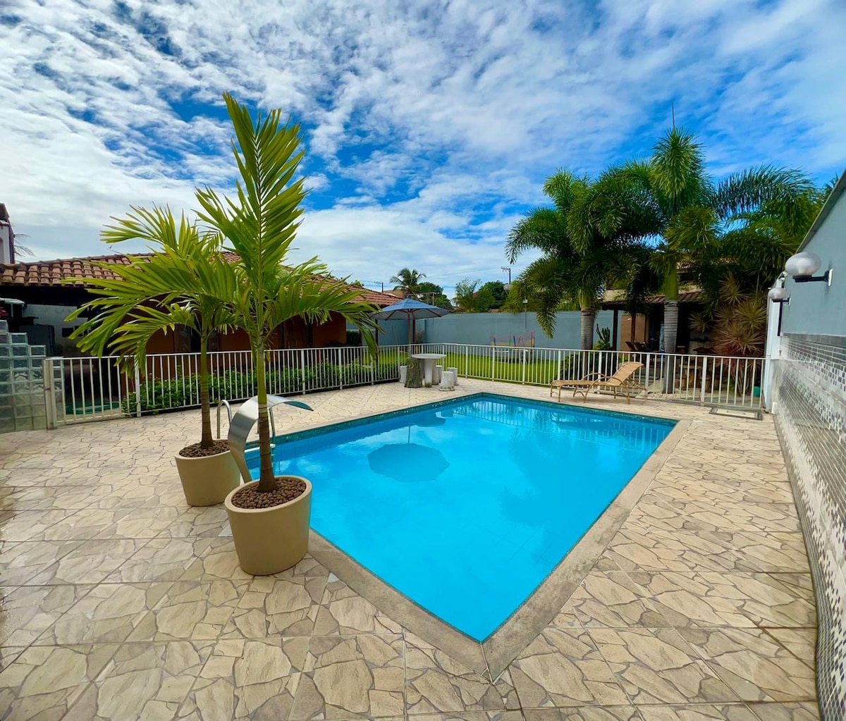 Toetasjes hus ved siden av snackbarer, drikkevaredistributører, bakeri, strand, lagune, enkel tilgang til Rodovia do Sol. Ved siden av politistasjonen i nabolaget. Tre soverom/suiter med dobbeltseng , ekstra madrasser og klimaanlegg. Basseng og fritidsområde, parkering, elektrisk port. Stille og trygt nabolag, i nærheten av Guarapari og Vila Velha. Stue med sofa og TV. Wifi tilgjengelig. Kjøkken med stekeovn og redskaper. Vaskemaskin. Vert tilgjengelig for spørsmål og turer