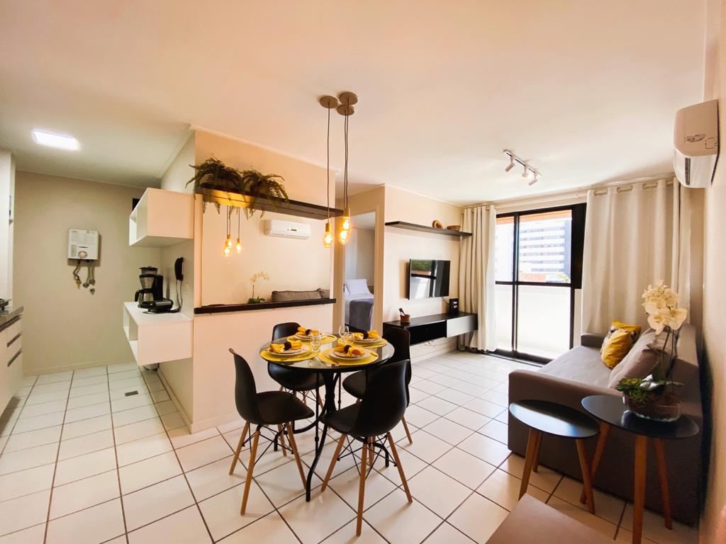 «Ny leilighet, nylig renovert, med moderne innredning, som ligger i hjertet av Ponta Verde, Pajuçara, Ferinha do Artesanato og Jatíuca, de beste strendene i Maceió, fem minutter fra leiligheten til de ovennevnte strendene, leilighet med et bruksareal på 50 meter – stue integrert med kjøkkenet, ett soverom (suite) med integrert toalett – 9000 BTU klimaanlegg. Internett – Wi-Fi – Netflix, sengetøy og badehåndkle, komplett kjøkkenutstyr, glass, boller, kjøleskap, kaffetrakter, 2 TV-er. 24-timers portvakt.