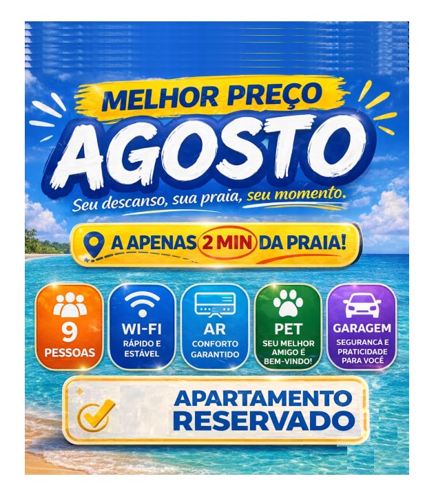 Imagina acordar, tomar café na varanda com brisa do mar e em 3 minutos estar com os pés na areia — sem carro, sem Uber, sem estresse. É exatamente isso que a Casa Pitaya entrega para sua família. São 3 quartos espaçosos, 2 banheiros completos e uma sala generosa onde todo mundo cabe — e ainda sobra espaço para as crianças. Roupas de cama e toalhas limpas já incluídas: é só chegar e curtir.