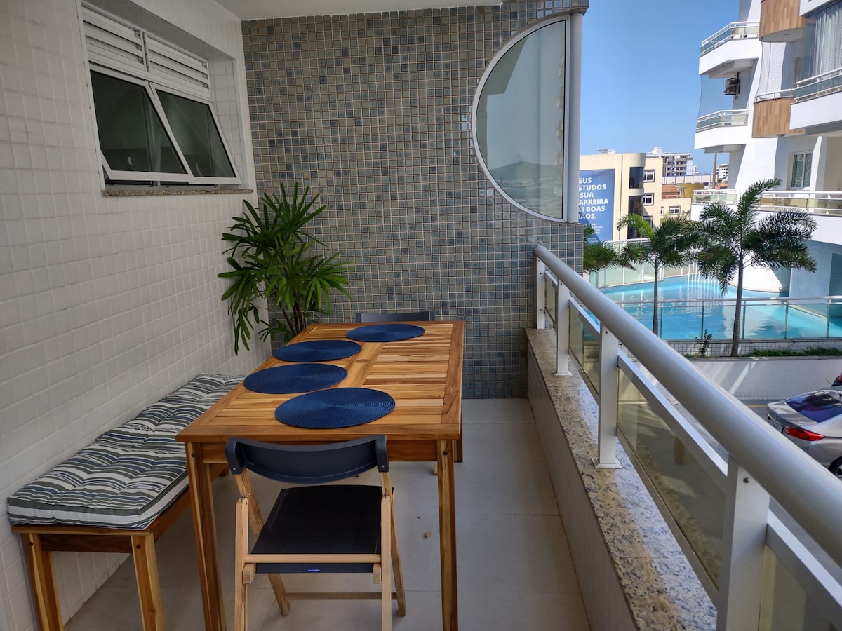 Vakker leilighet i Cabo Frio med 2 soverom, stue, kjøkken, 2 bad, megabalkong, svømmebasseng, badstue, treningsrom, leketøyrom, garasje inne i bygningen, Wi-Fi, sky, smart-TV i suiten, 800 meter fra stranden, i nærheten av bakeri, markeder, apotek, restauranter. MERK: FELLESOMRÅDET KAN BRUKES FREM TIL 22:00, I HENHOLD TIL KONDOMINIUMETS REGLER.