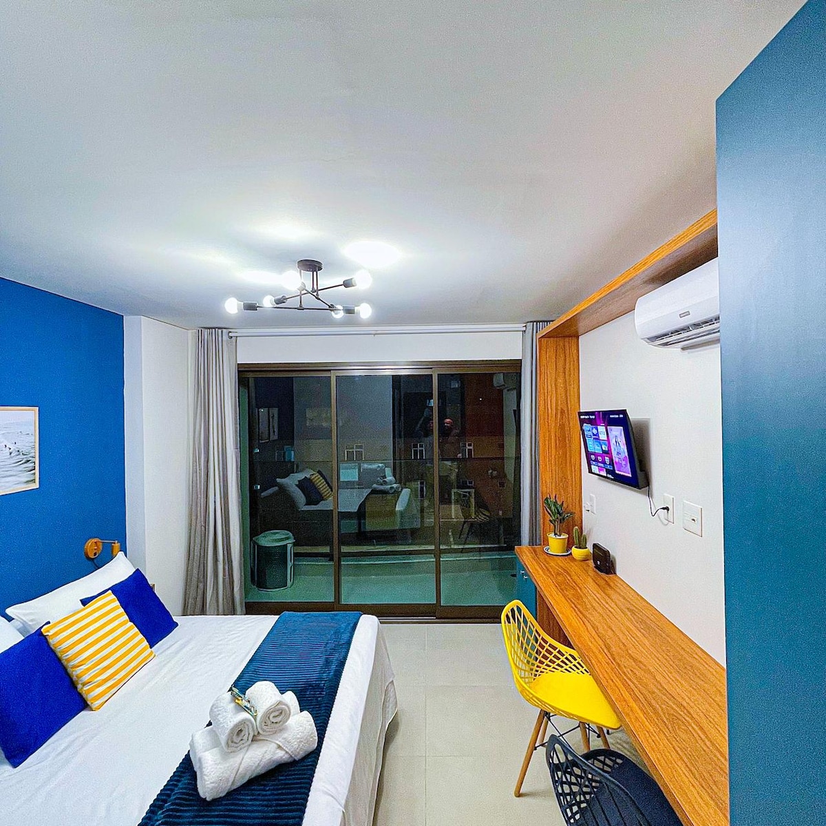 Komplett leilighet på 45 kvm i et selveierleilighet med komplett fritidsområde, sikkerhet og komfort, designet for korte og lange opphold. Perfekt for par, folk som reiser i en gruppe for fritid/arbeid eller barnefamilier. Struktur for opp til 4 personer. Vi ligger én km fra Beach Park med en privilegert utsikt over sjøen og regionen. Apotek, bakerier, markeder, restauranter bare et skritt unna. Den beste verdien for pengene i regionen for deg som ønsker å være godt plassert med komfort og kvalitet.