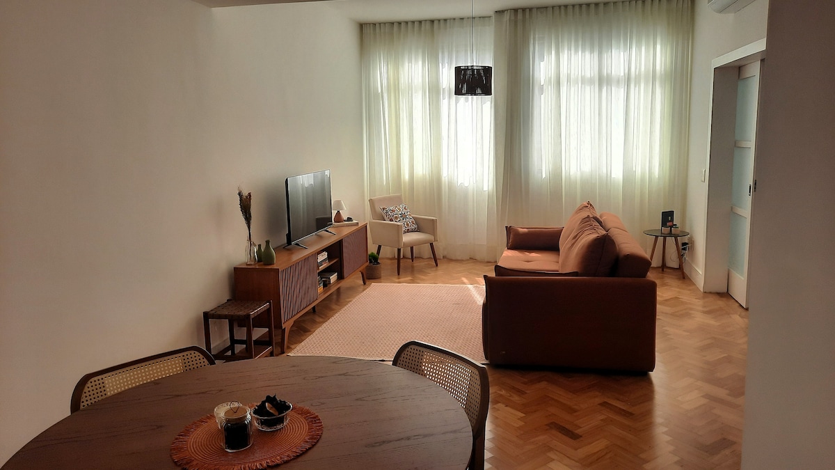 Velkommen til ferieboligen din ved stranden i Leme, den fredelige starten på Copacabana-stranden! Bare en tre minutters spasertur fra sanden, lover vår kjærlig dekorerte leilighet et unikt opphold. Omfavn den livlige lokale kulturen med butikker og restauranter i nærheten, og enkel tilgang til Rios underverker. Vi feirer mangfoldet og ønsker alle gjester velkommen, og fremmer et sted med gode vibber og ro. Nyt denne sjarmerende delen av Rio! 🏳️🌈♥️🙏🏽