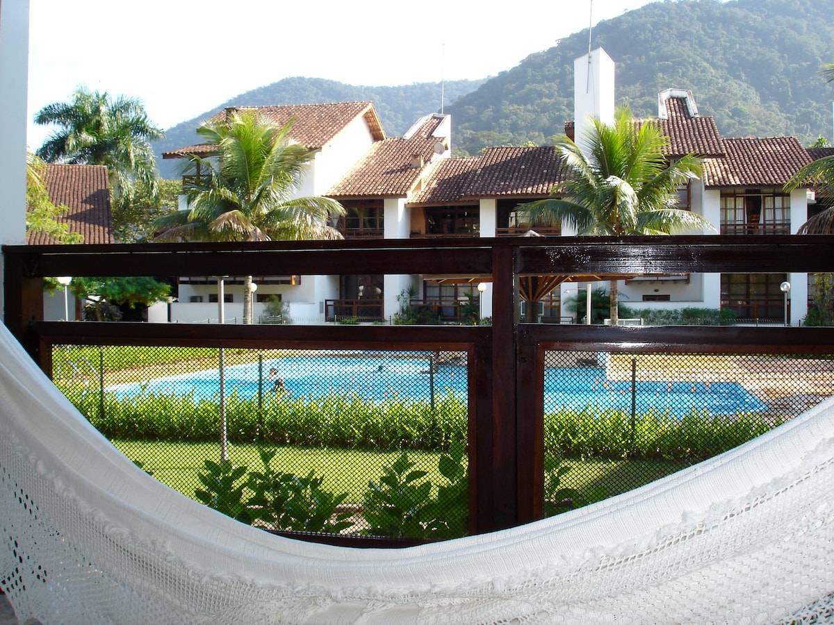 Komplett og helt privat enhet i hytte-stil, inne i en leilighet med døgnåpen sikkerhet, på en privilegert beliggenhet i Ubatuba. Noen få skritt fra strendene Lázaro, Sununga, Gruta que Chora, Domingas Dias og Saco da Ribeira, Shopping Ribeira Mall, med enkel tilgang til stien til de syv kildene, som gir tilgang til strendene Ribeira, Flamengo og Flamenguinho. Leiligheten har et svømmebasseng, badstue, lekeplass, bane, spillrom, grill, pizzaovn og privat område.