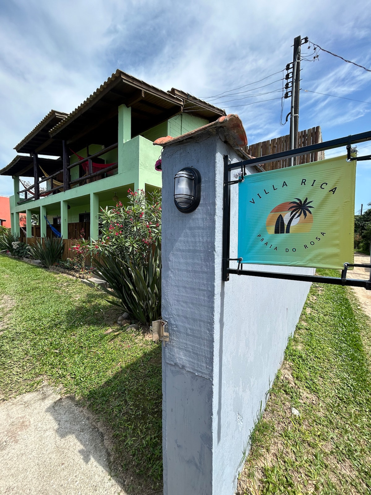 Suite med to miljøer, stort bad (uten jacuzzi), balkong, kjøkken med induksjonskomfyr med én plate, minibar, mikrobølgeovn, kaffetrakter, elektrisk vannkoker og kjøkkenutstyr. Det er én dobbeltseng og én ekstra seng for opptil 4 personer. Apê har også et skrivebord for arbeid og måltider, garderober og stabilt trådløst nettverk. Sengetøy og håndklær er tilgjengelig for alle gjester. Det er perfekt for enslige reisende, par med eller uten barn. Beliggenhet: - I hovedgaten i centrinho do Rosa – 1,3 km fra Praia do Rosa