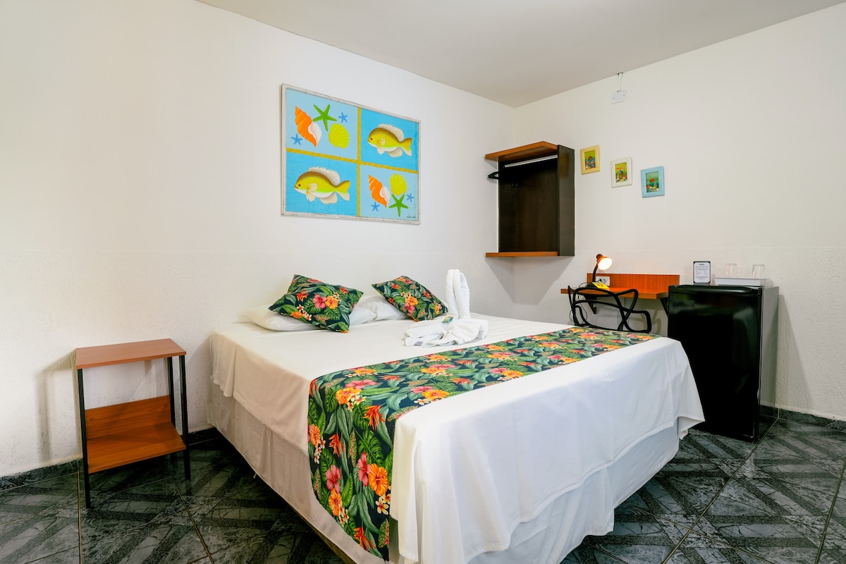 Suite med én dobbeltseng med klimaanlegg, vifte, smart-TV og trådløst nettverk. Med deilig frokost og ledig med bil. 100 meter fra kanten av Itaguá-stranden, i nærheten av turer, gode restauranter, butikker, Tamar og akvariet. Tilgang til de nordlige, sørlige strendene og også de sentrale strendene. Huset har en vakker stue og et kjøkken hvis du ønsker å lage mat eller spise.